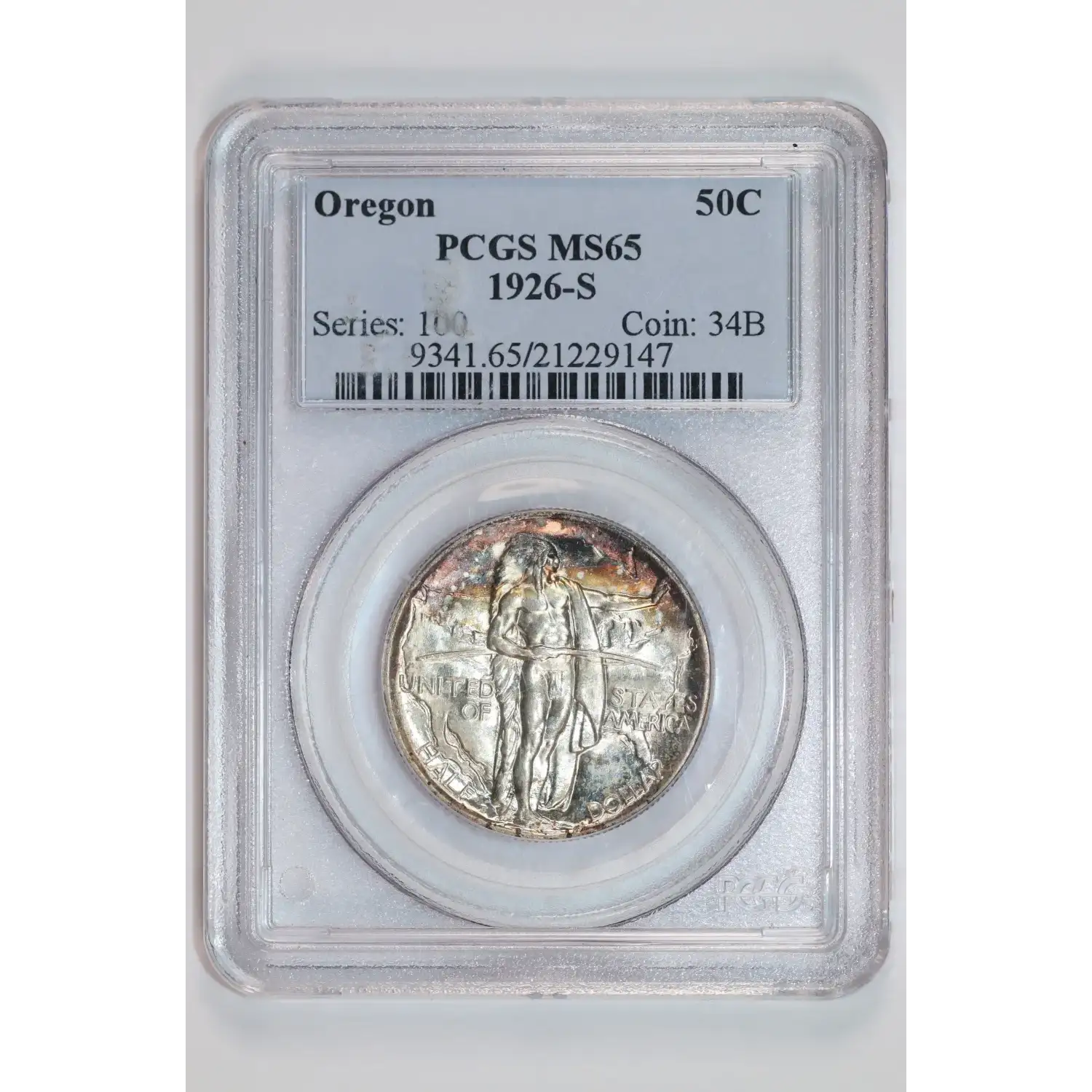1926-S OREGON COMMEMORATIVE HALF DOLLAR PCGS MS65 PRETTY ORIGINAL COLOR!