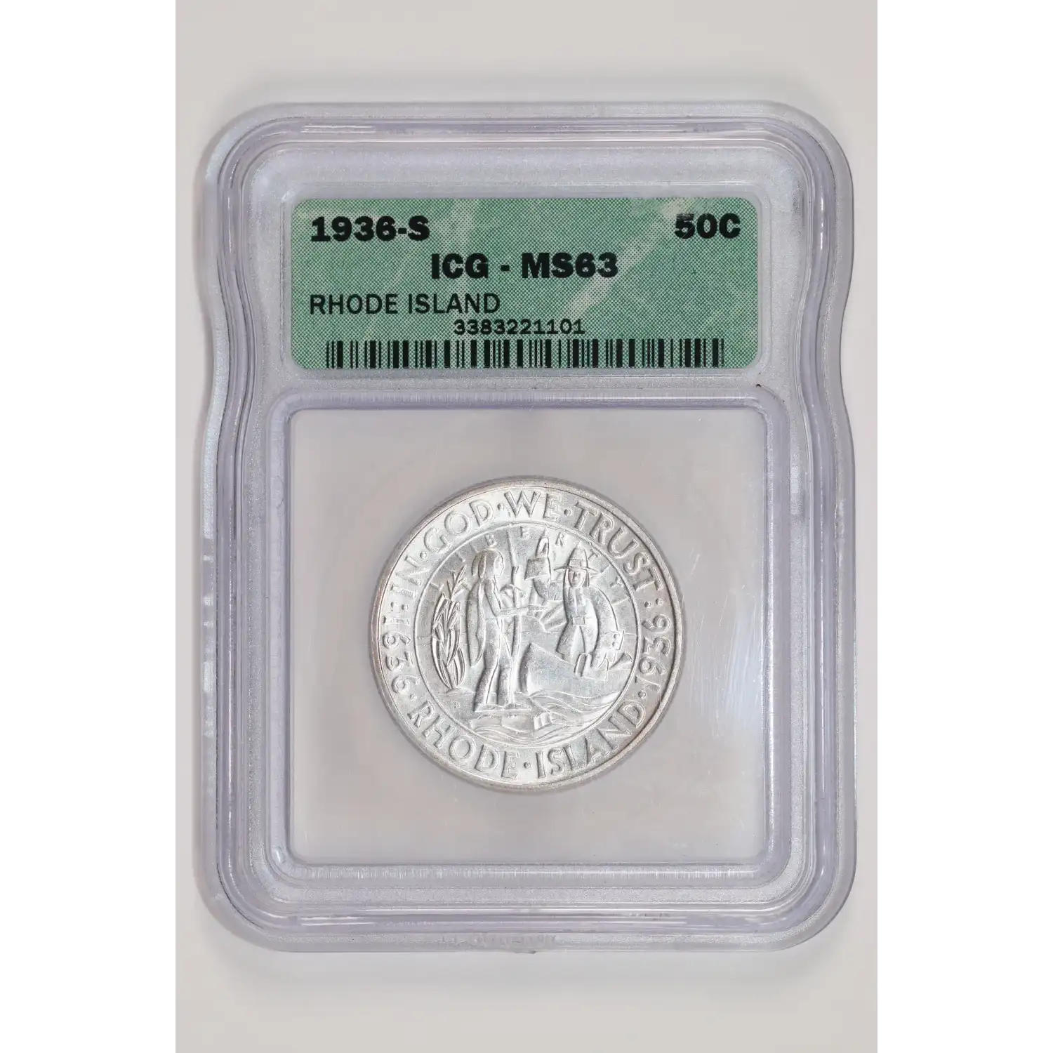1936-S RHODE ISLAND COMMEMORATIVE HALF DOLLAR ICG MS63