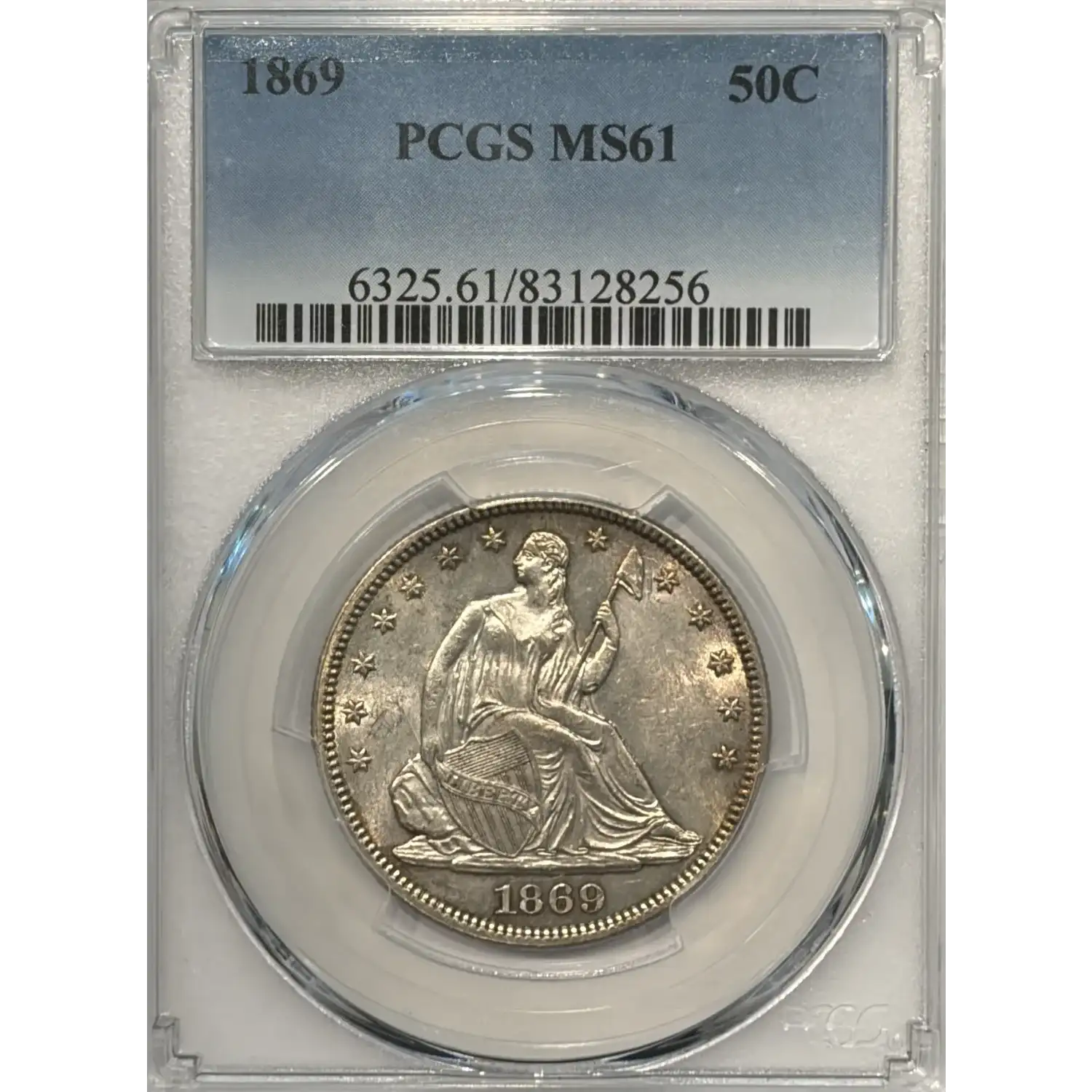1869 SEATED LIBERTY HALF DOLLAR PCGS MS61