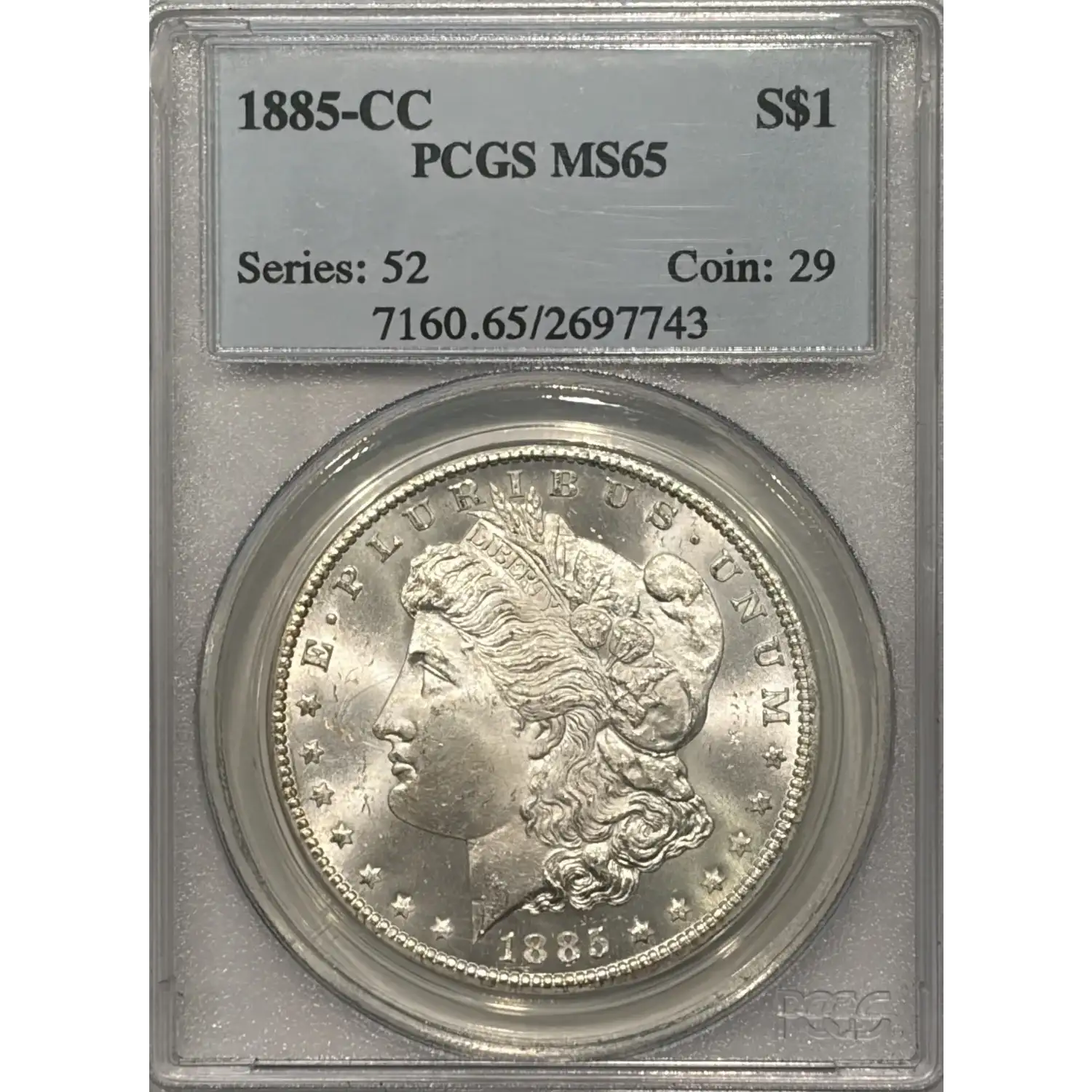 1885-CC Morgan Silver Dollar PCGS MS-65
