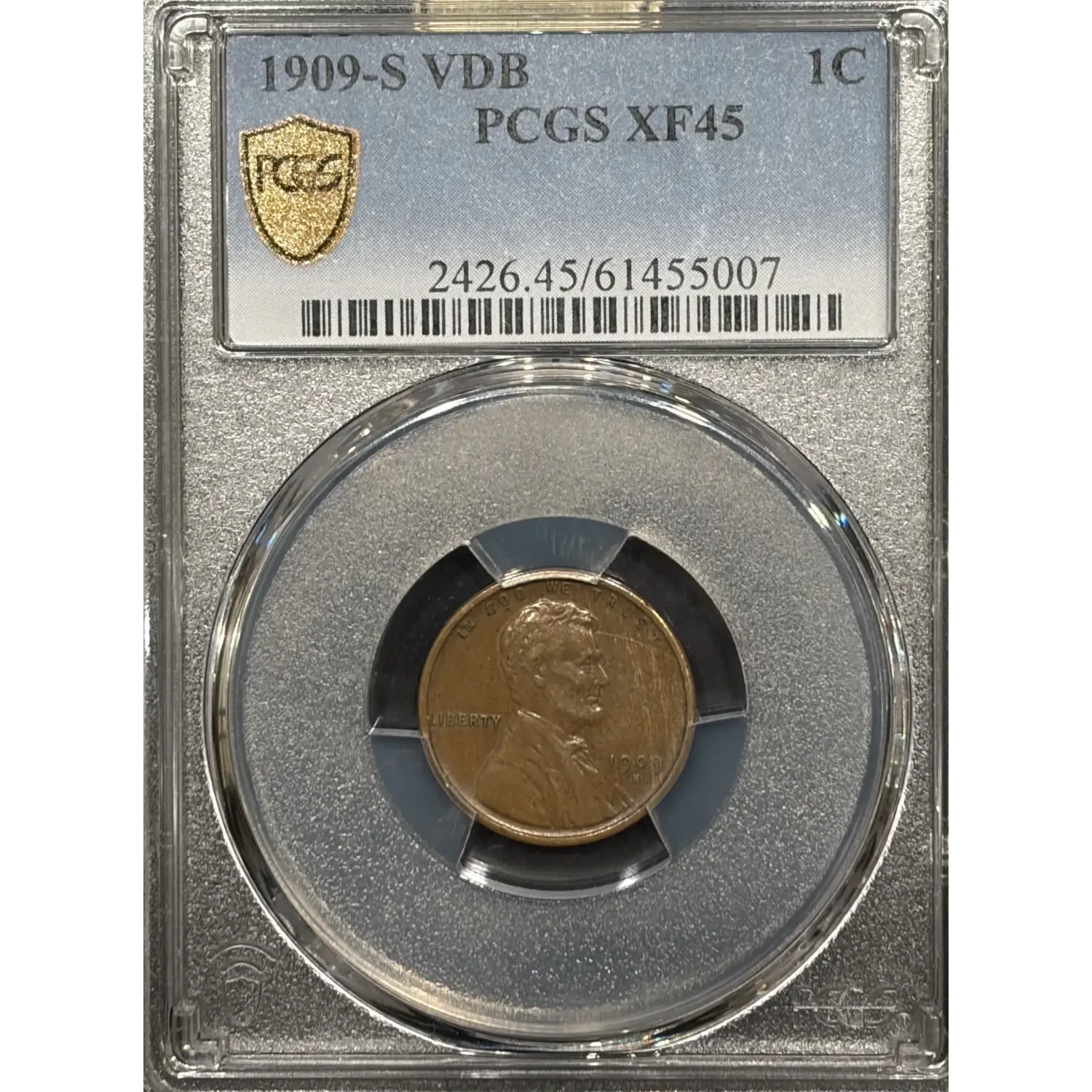 1909-S Small Cents Lincoln, Wheat Ears Reverse PCGS XF-45 BN