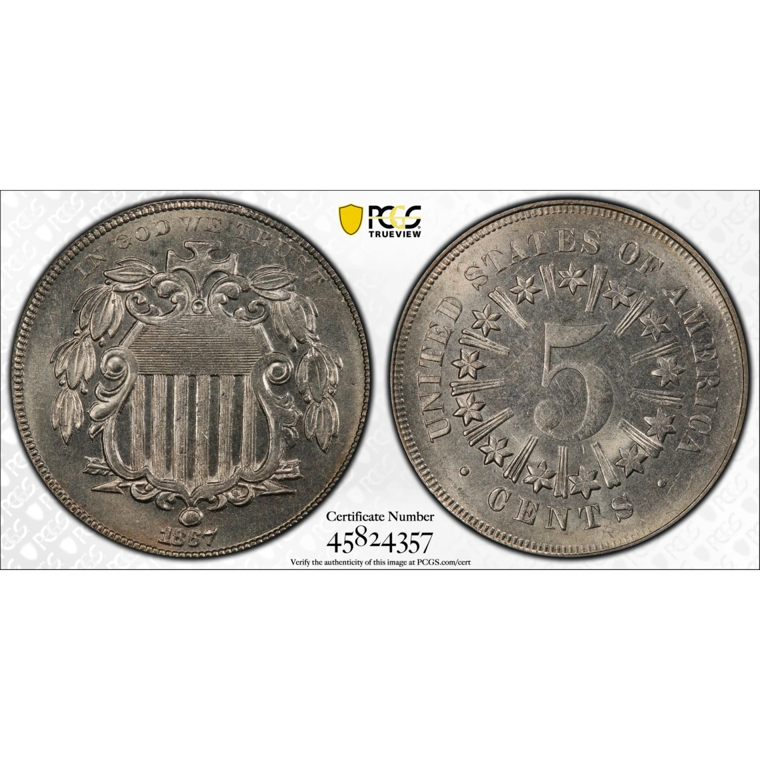 1867 Nickel Shield PCGS MS-64 Rays