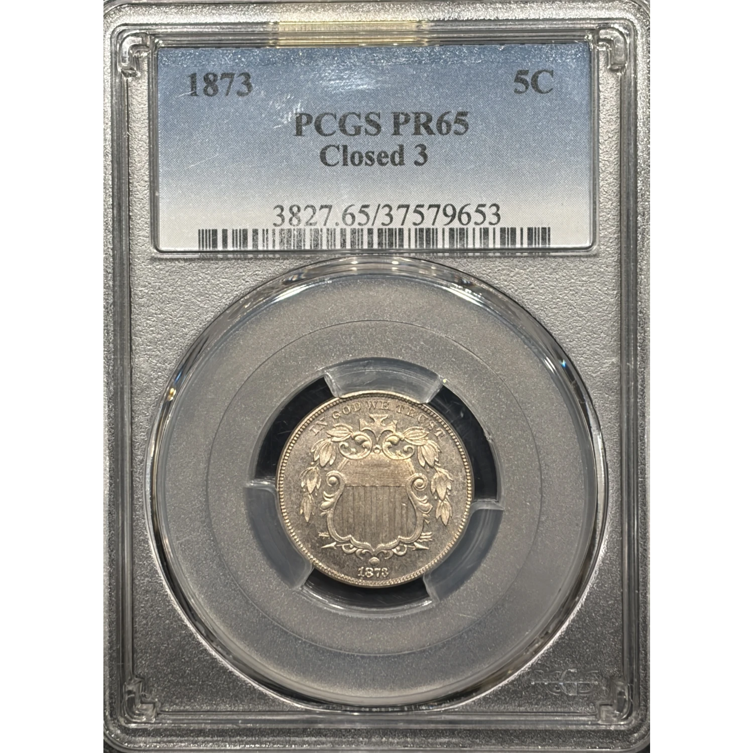 1873 CLOSED 3 PROOF SHIELD NICKEL PCGS PR65