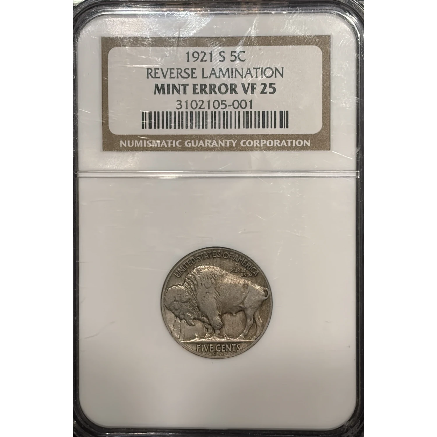 1921-S BUFFALO NICKEL REVERSE LAMINATION NGC VF25