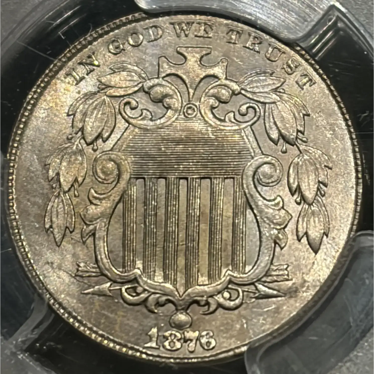 1876 SHIELD NICKEL PCGS MS63