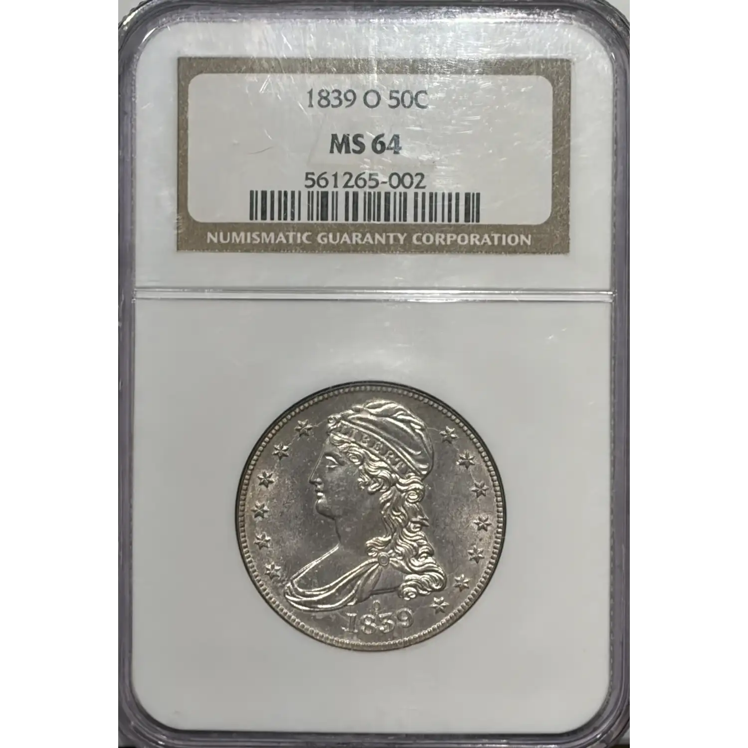 1839-O REEDED EDGE HALF DOLLAR NGC MS64