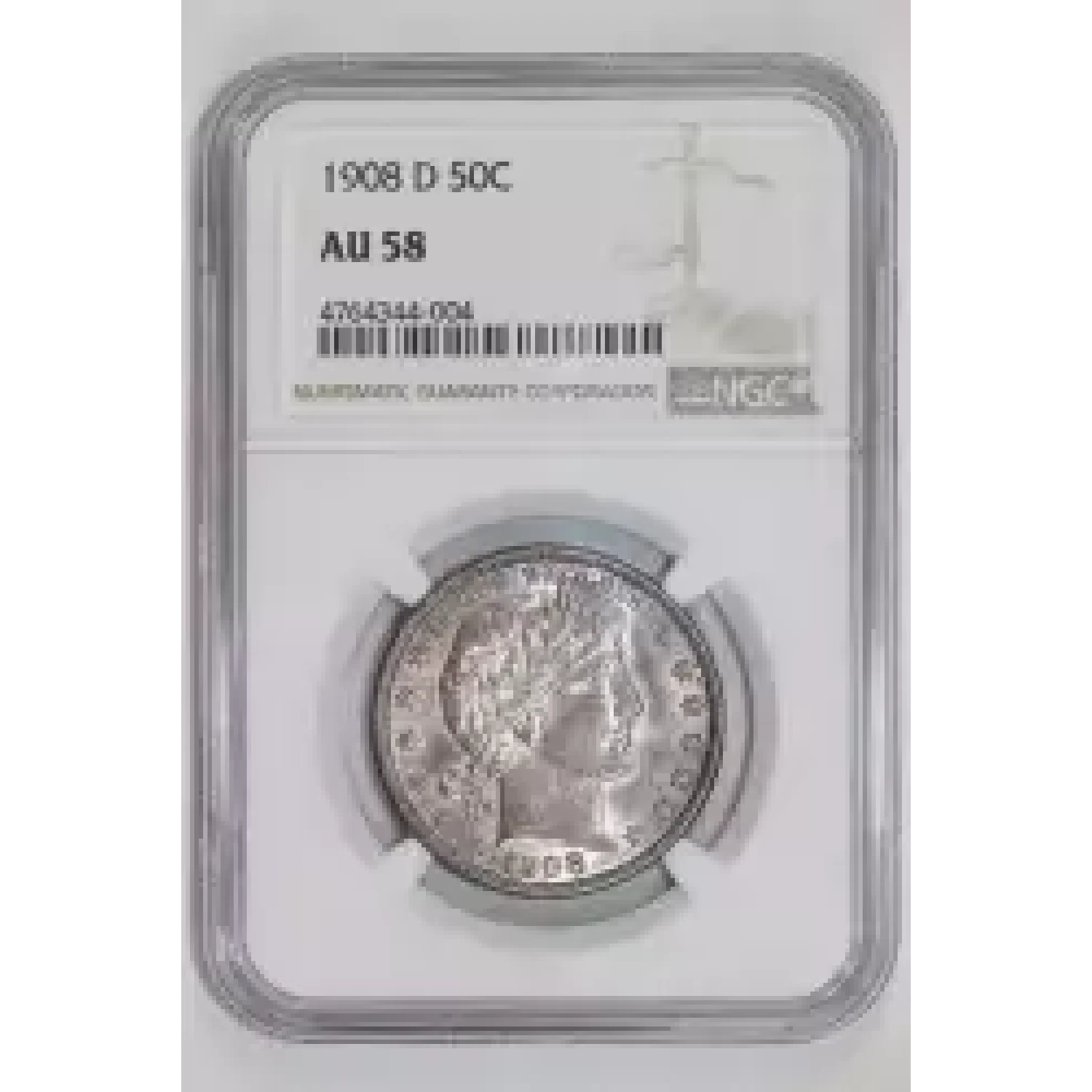 521798 | 1908-D Barber Half Dollar NGC AU-58 | NGC | AU-58 | Sold: 28/03/2024 | $595 |
