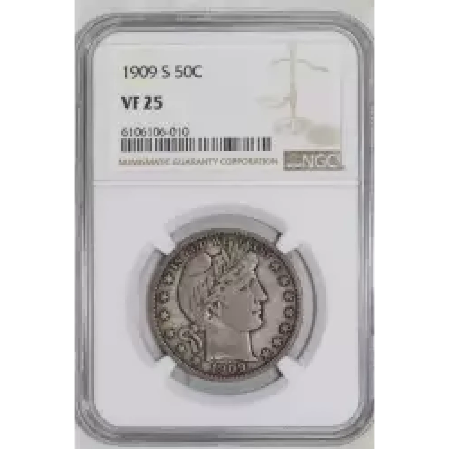 515478 | 1909-S Barber Half Dollar NGC VF-25 | NGC | VF-25 | Sold: 05/12/2022 | $170 |