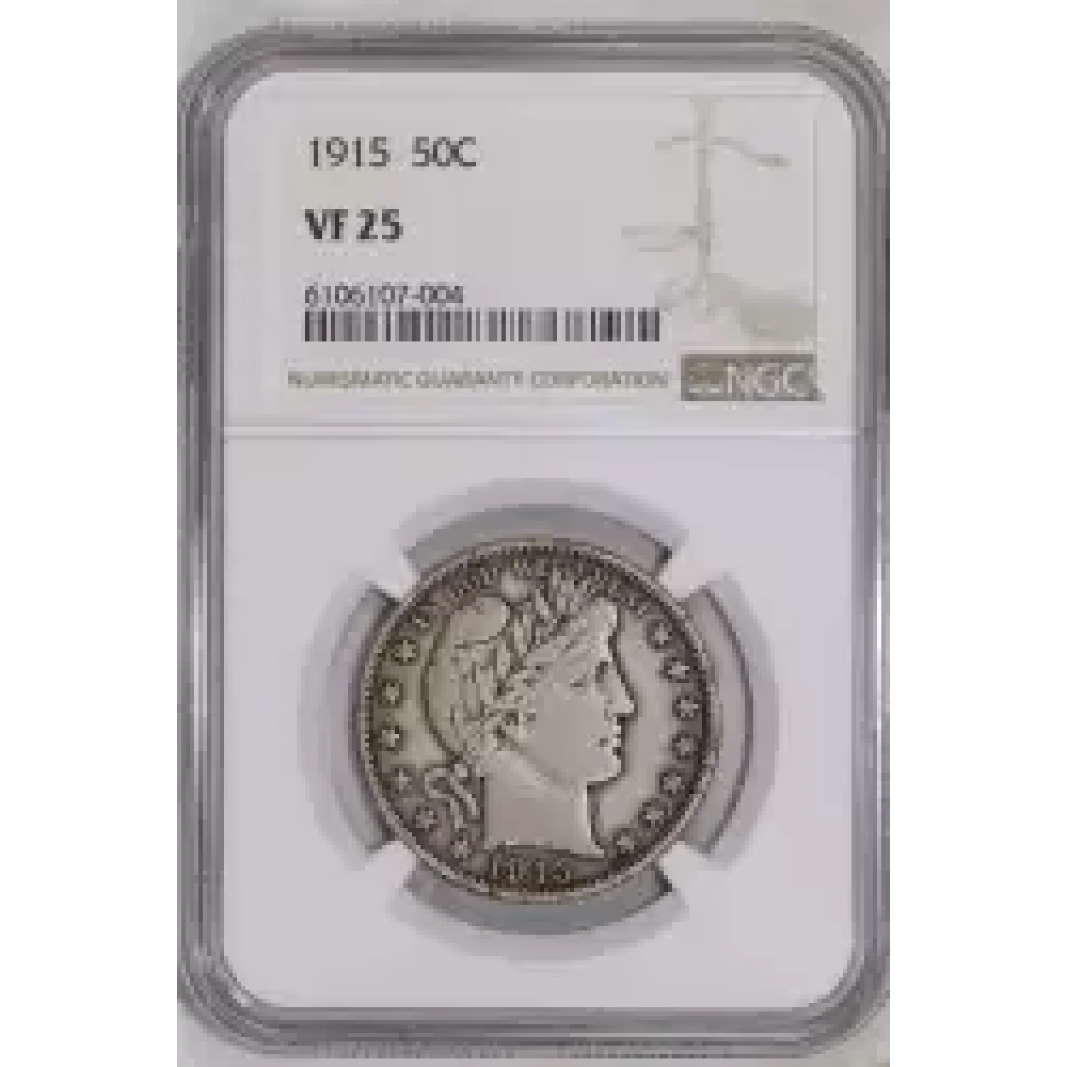 515492 | 1915 Barber Half Dollar NGC VF-25 | NGC | VF-25 | Sold: 28/08/2023 | $550 |