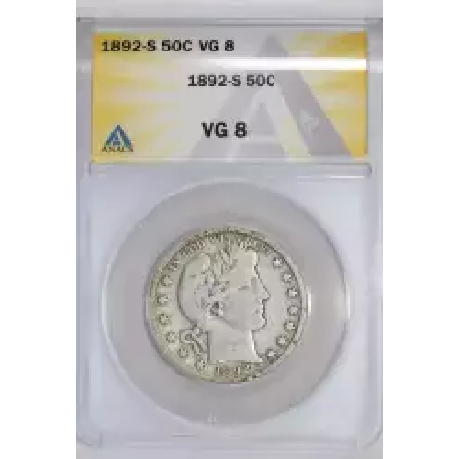 502685 | 1892-S Barber Half Dollar ANACS VG-8 | ANACS | VG-8 | Sold: 18/07/2022 | $325 |