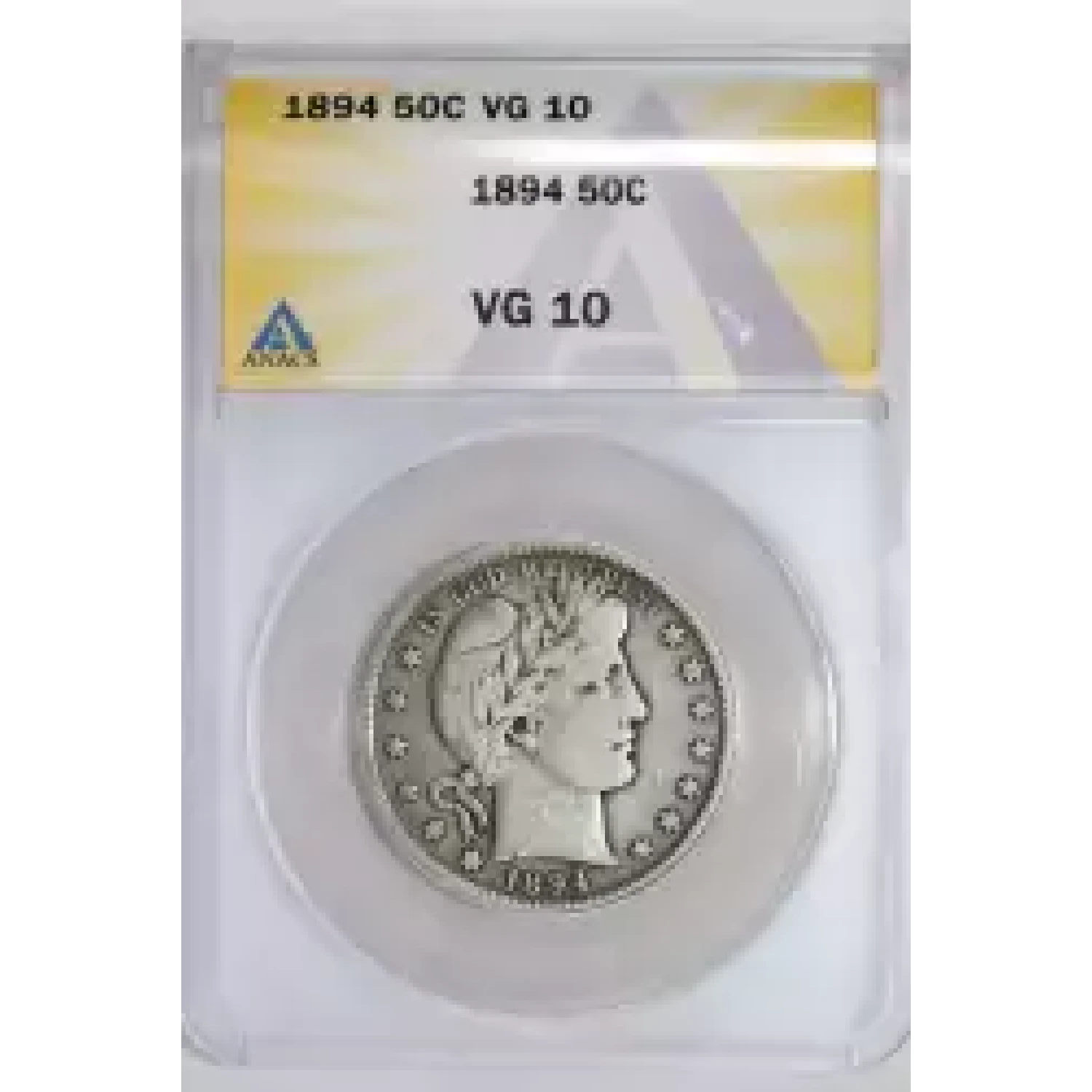 502687 | 1894 Barber Half Dollar ANACS VG-10 | ANACS | VG-10 | Sold: 13/07/2022 | $55 |