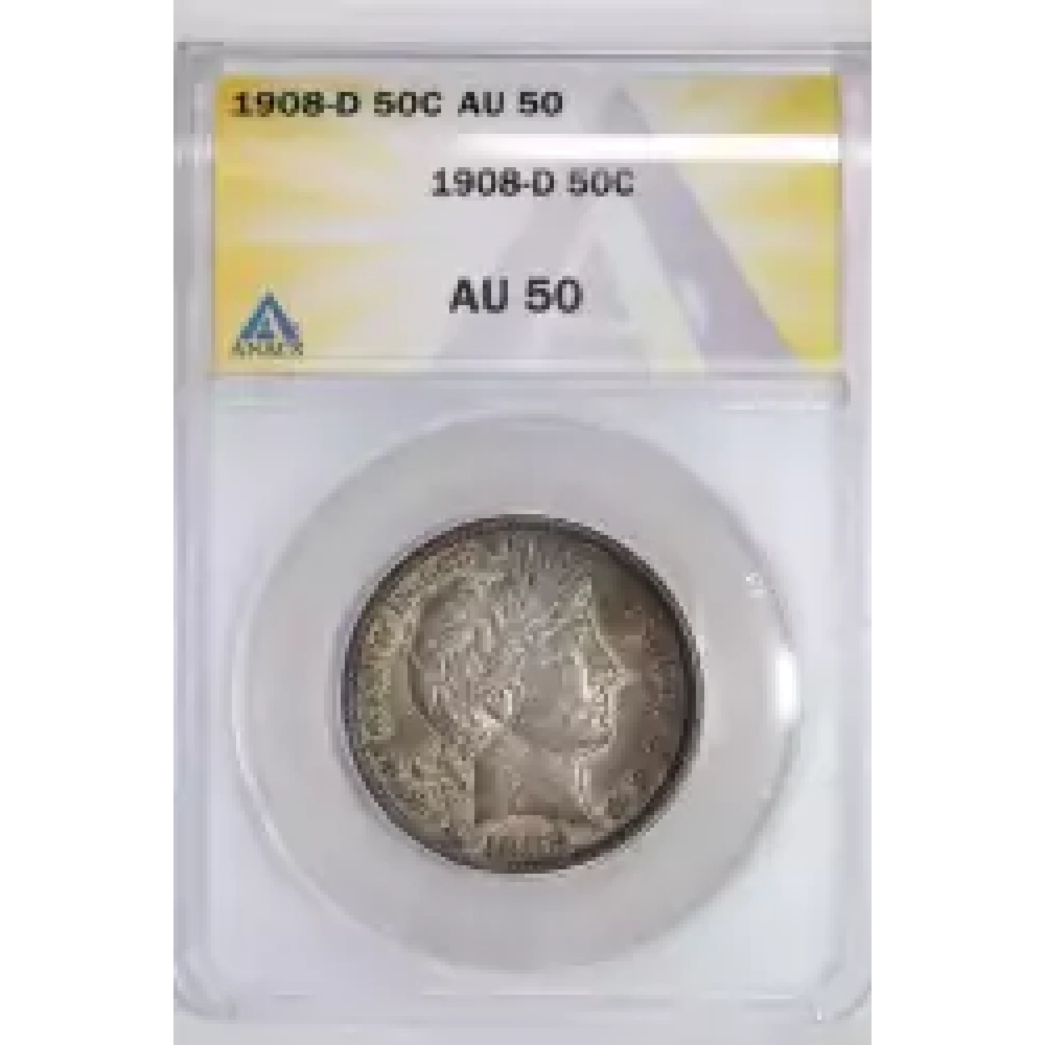 502694 | 1908-D Barber Half Dollar ANACS AU-50 | ANACS | AU-50 | Sold: 12/01/2023 | $400 |