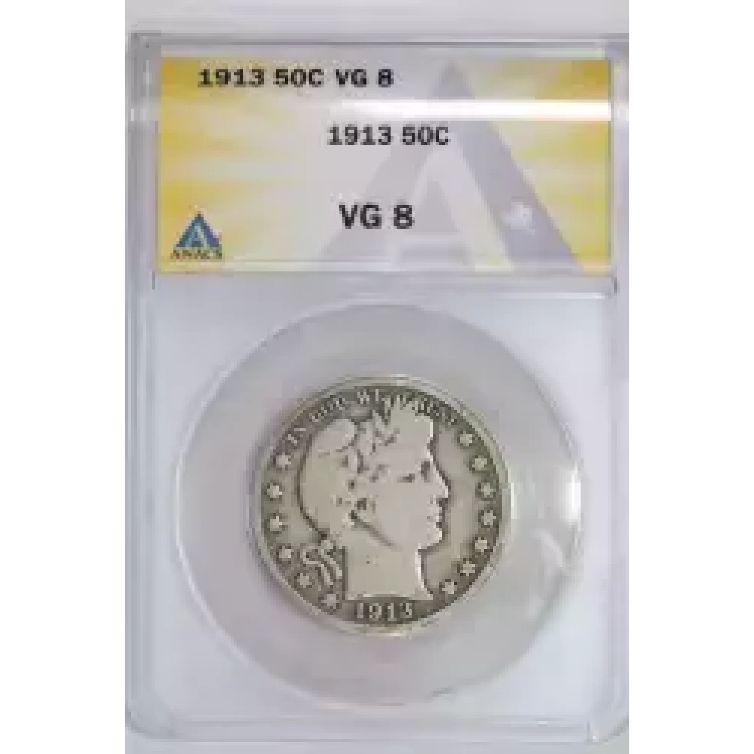 502697 | 1913 Barber Half Dollar ANACS VG-8 | ANACS | VG-8 | Sold: 21/02/2023 | $110 |