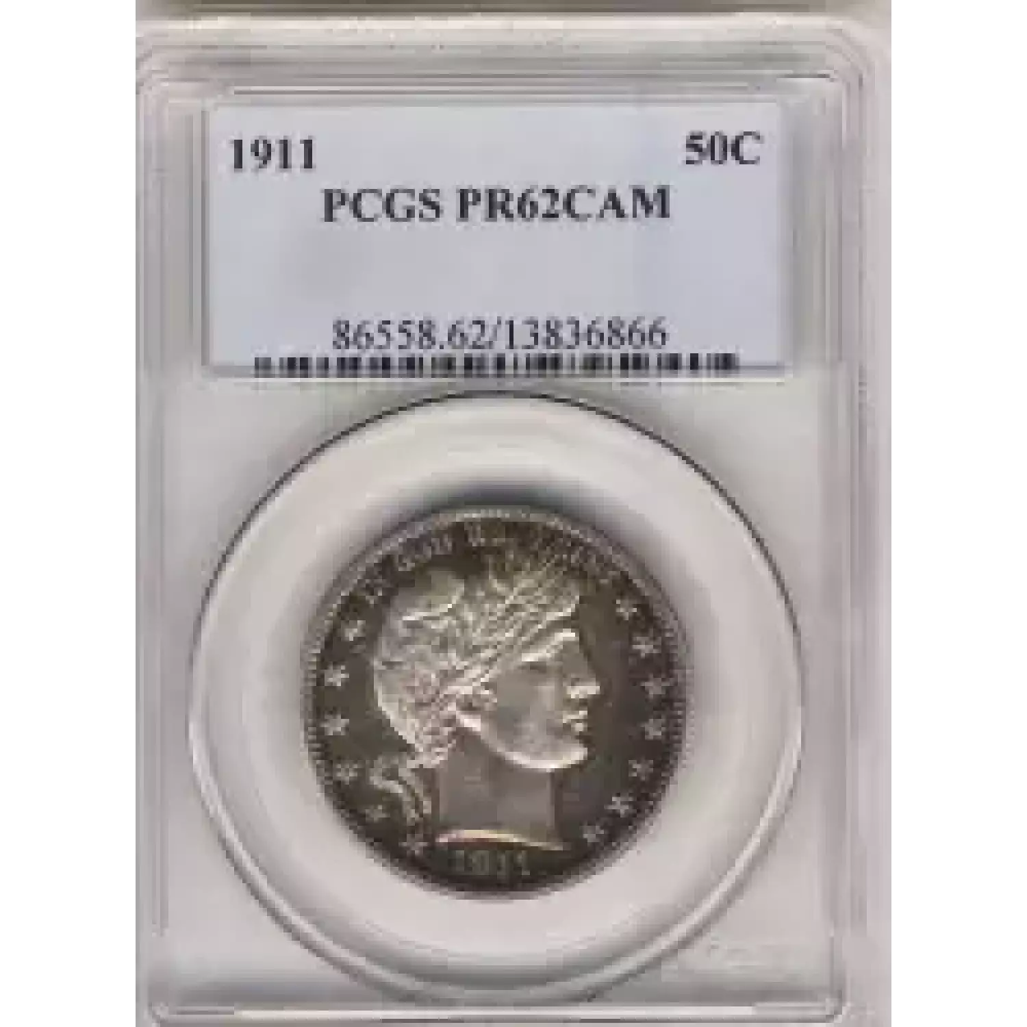 504521 | 1911-PR-62 Barber Half Dollar PCGS PR-62 CAM | PCGS | PR-62 | Sold: 06/11/2008 | $950 |