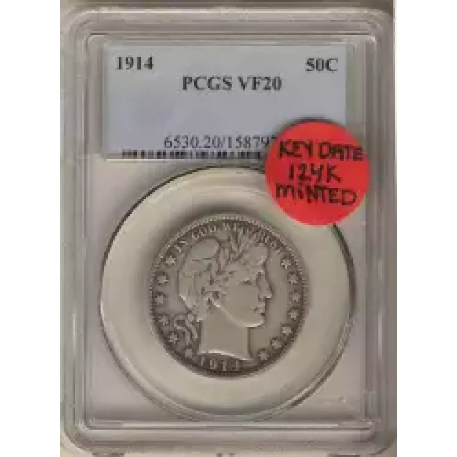 504961 | 1914-VF-20 Barber Half Dollar PCGS VF-20 | PCGS | VF-20 | Sold: 03/10/2009 | $650 |