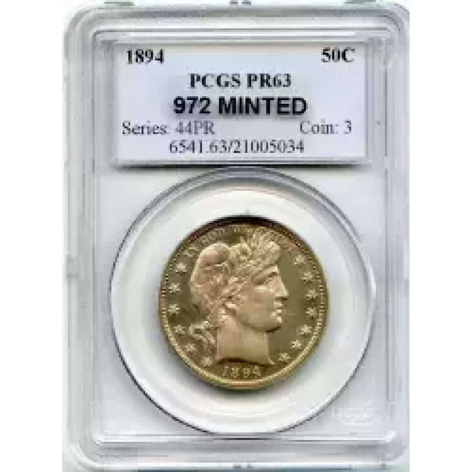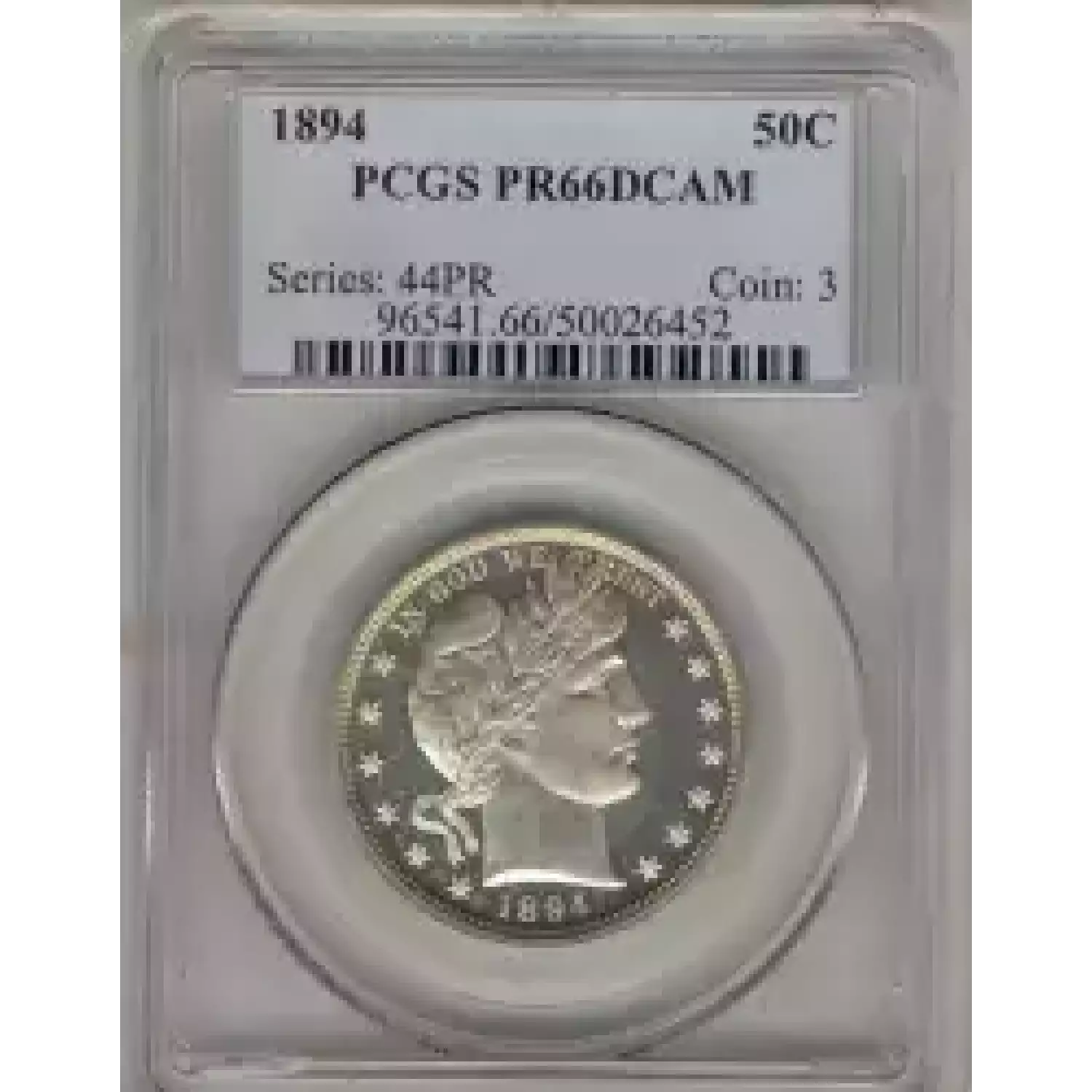 505125 | 1894-PR-66 Barber Half Dollar PCGS PR-66 DCAM | PCGS | PR-66 | Sold: 20/11/2009 | $12,000 |