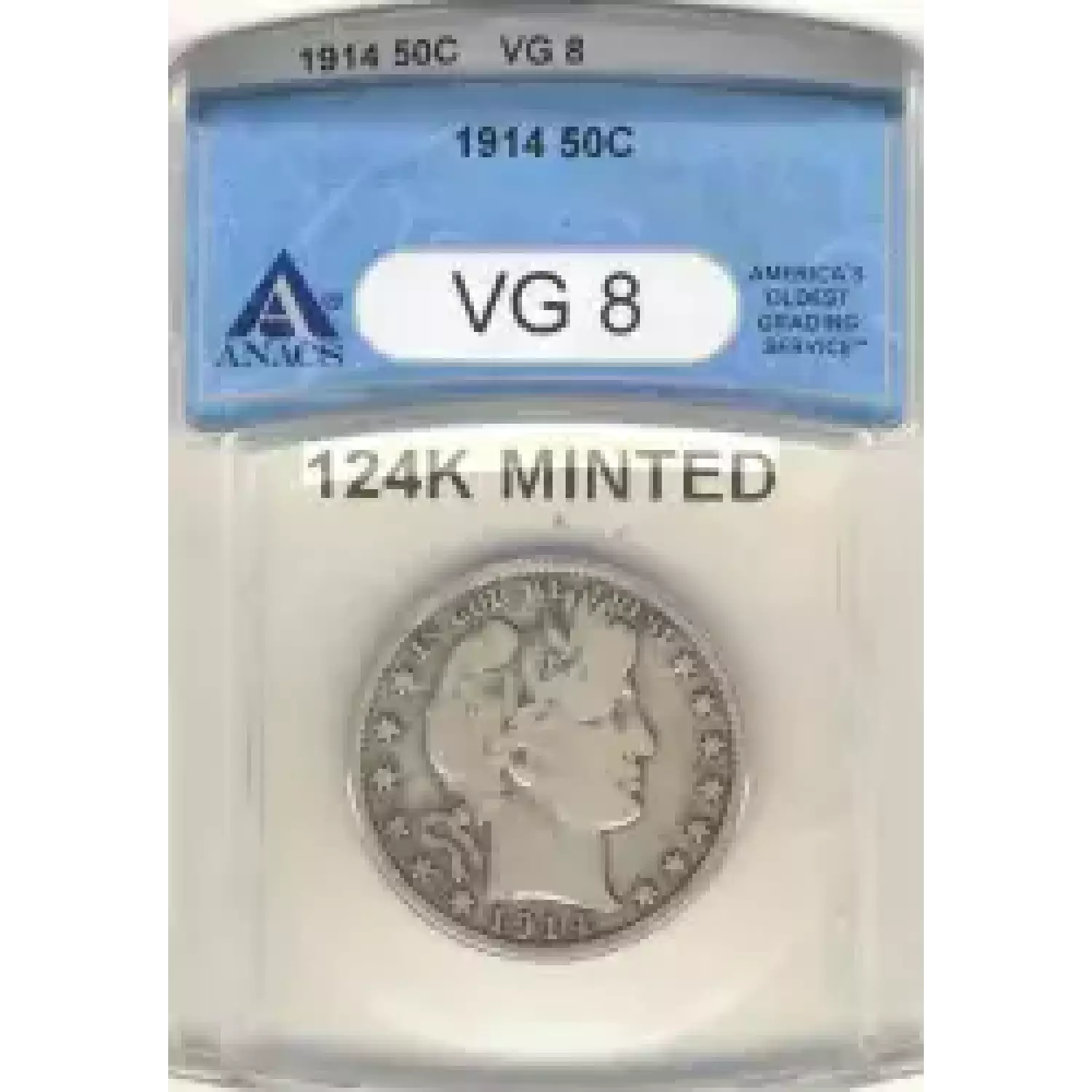 505904 | 1914-VG-8 Barber Half Dollar ANACS VG-8 | ANACS | VG-8 | Sold: 29/04/2012 | $150 |