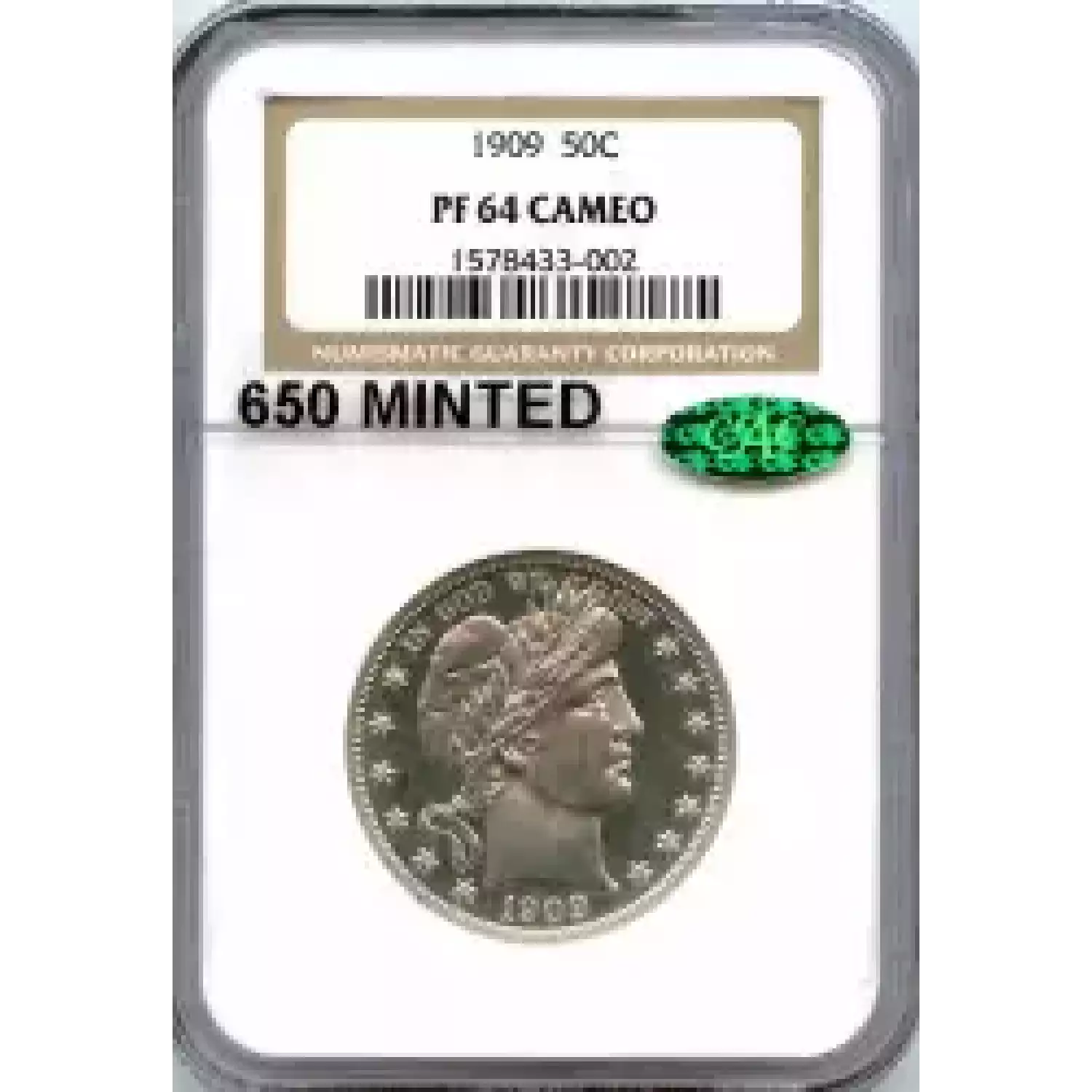 507801 | 1909-PF-64 Barber Half Dollar NGC PF-64 CAM CAC | NGC | PF-64 | Sold: 22/07/2015 | $1,600 |