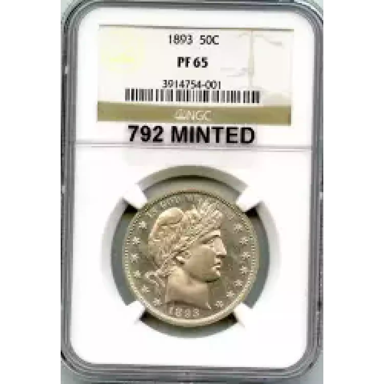 507819 | 1893-PF-65 Barber Half Dollar NGC PF-65 | NGC | PF-65 | Sold: 16/03/2017 | $2,500 |