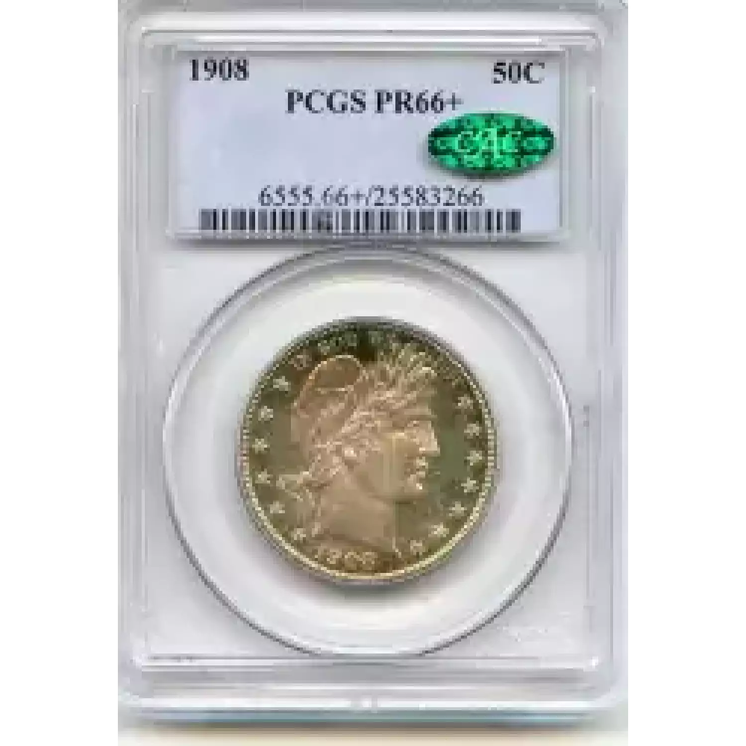 508082 | 1908-PR-66+ Barber Half Dollar PCGS PR-66+ CAC | PCGS | PR-66+ | Sold: 28/11/2014 | $4,300 |