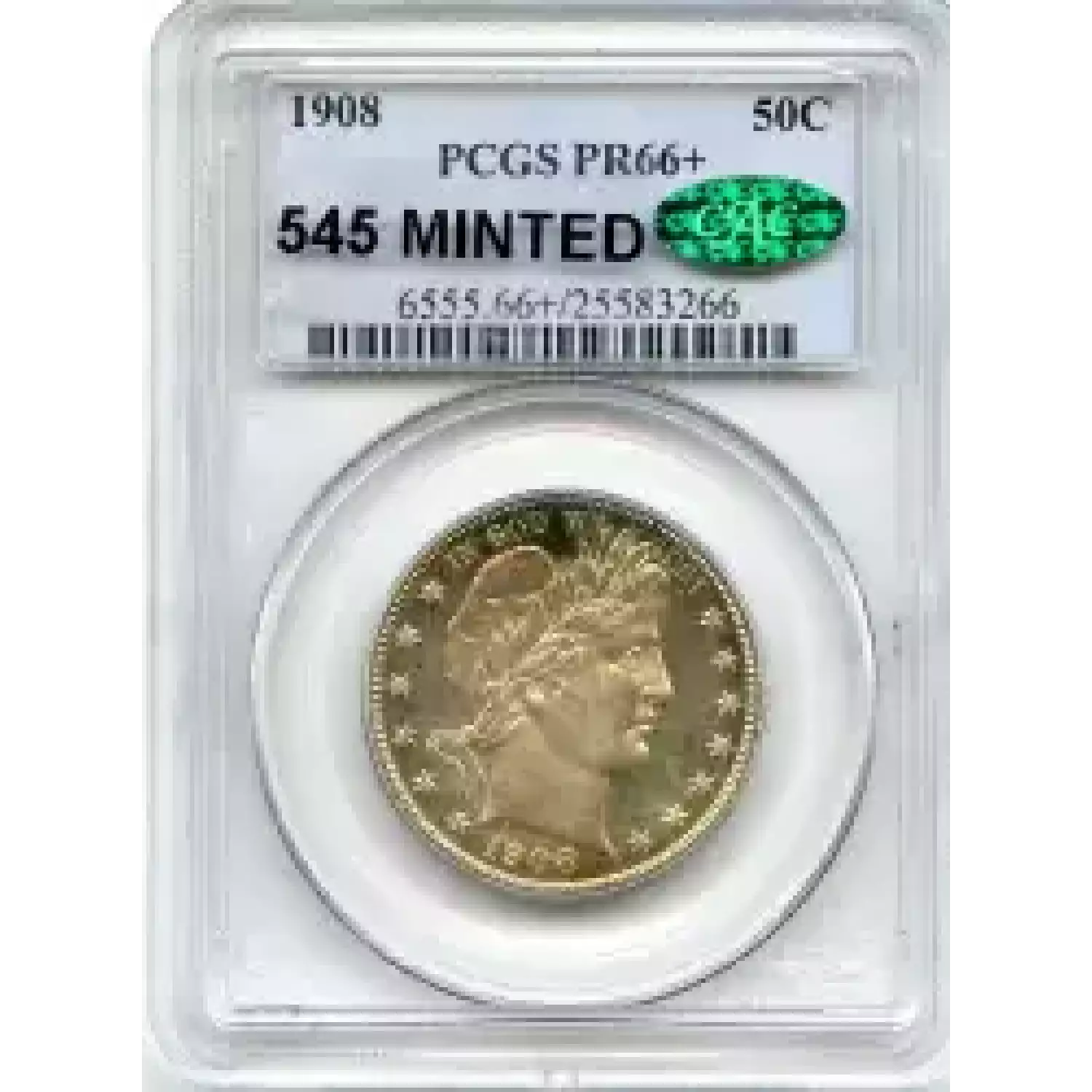 508081 | 1908-PR-66+ Barber Half Dollar PCGS PR-66+ CAC | PCGS | PR-66+ | Sold: 24/01/2015 | $4,300 |