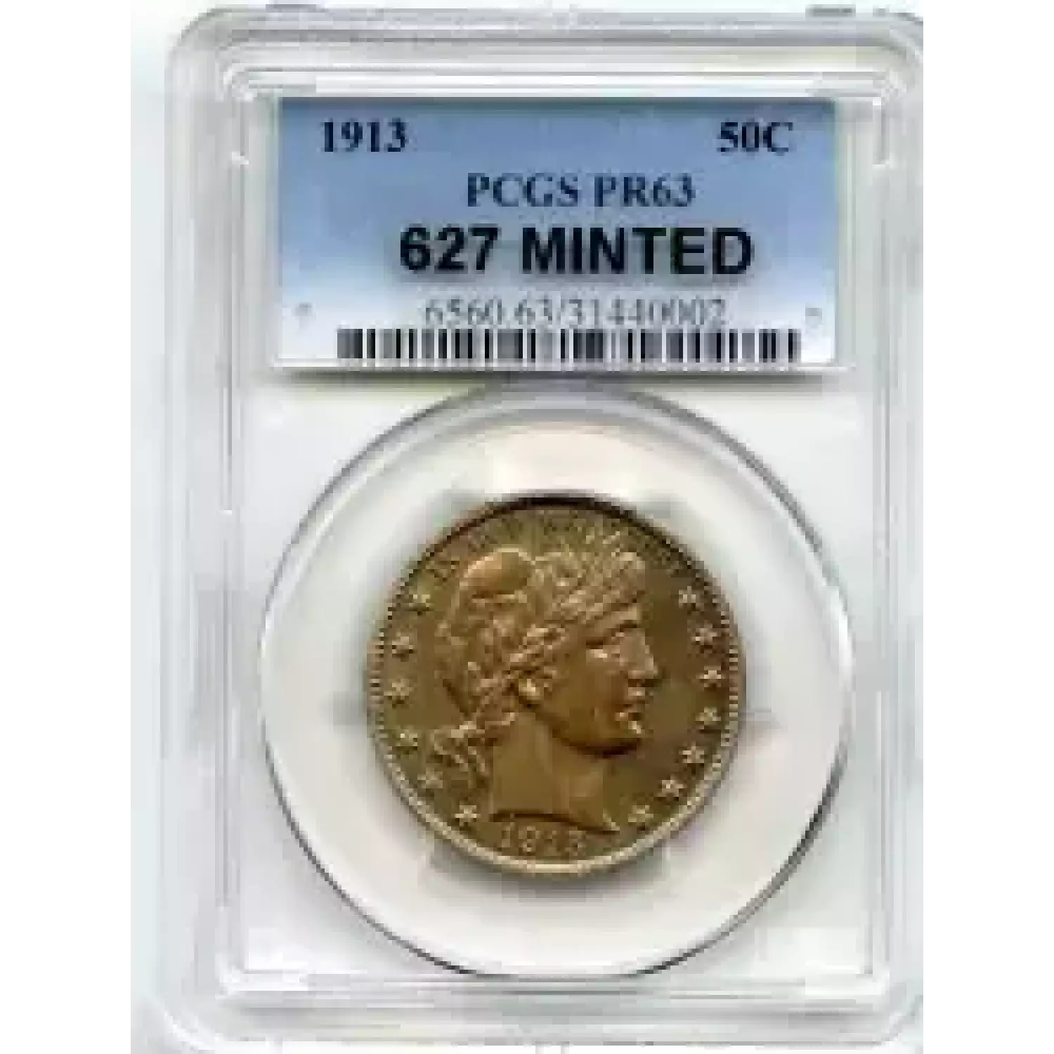 512467 | 1913-PR-63 Barber Half Dollar PCGS PR-63 | PCGS | PR-63 | Sold: 14/05/2019 | $1,100 |