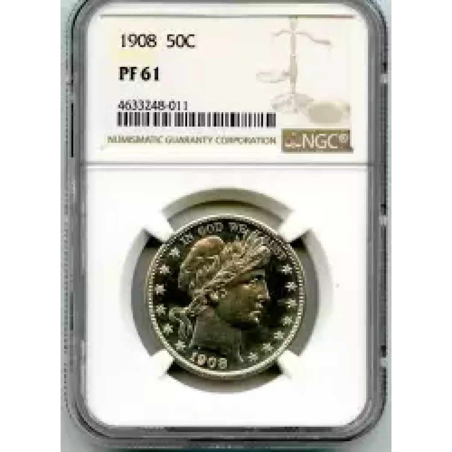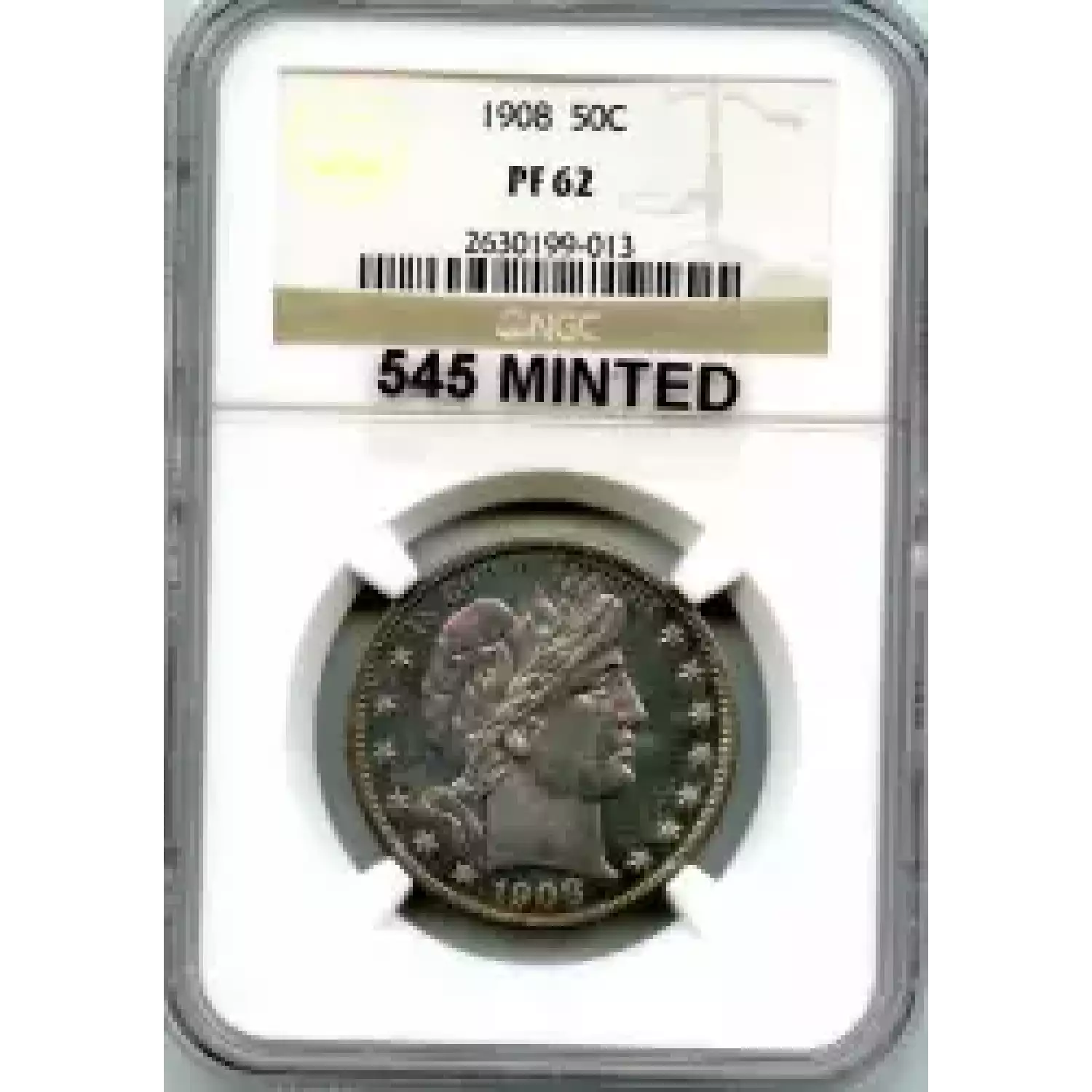 508451 | 1908-PF-62 Barber Half Dollar NGC PF-62 | NGC | PF-62 | Sold: 15/07/2015 | $725 |