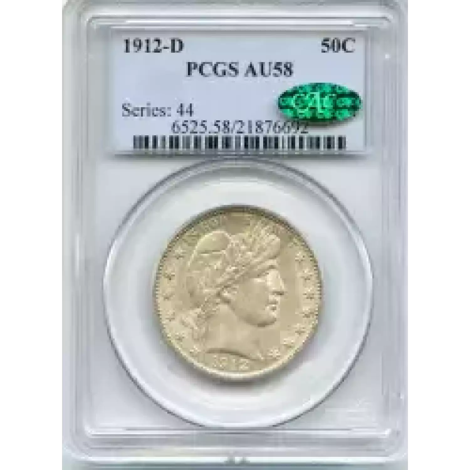 508668 | 1912-AU-58 Barber Half Dollar PCGS AU-58 CAC | PCGS | AU-58 | Sold: 11/10/2015 | $581 |