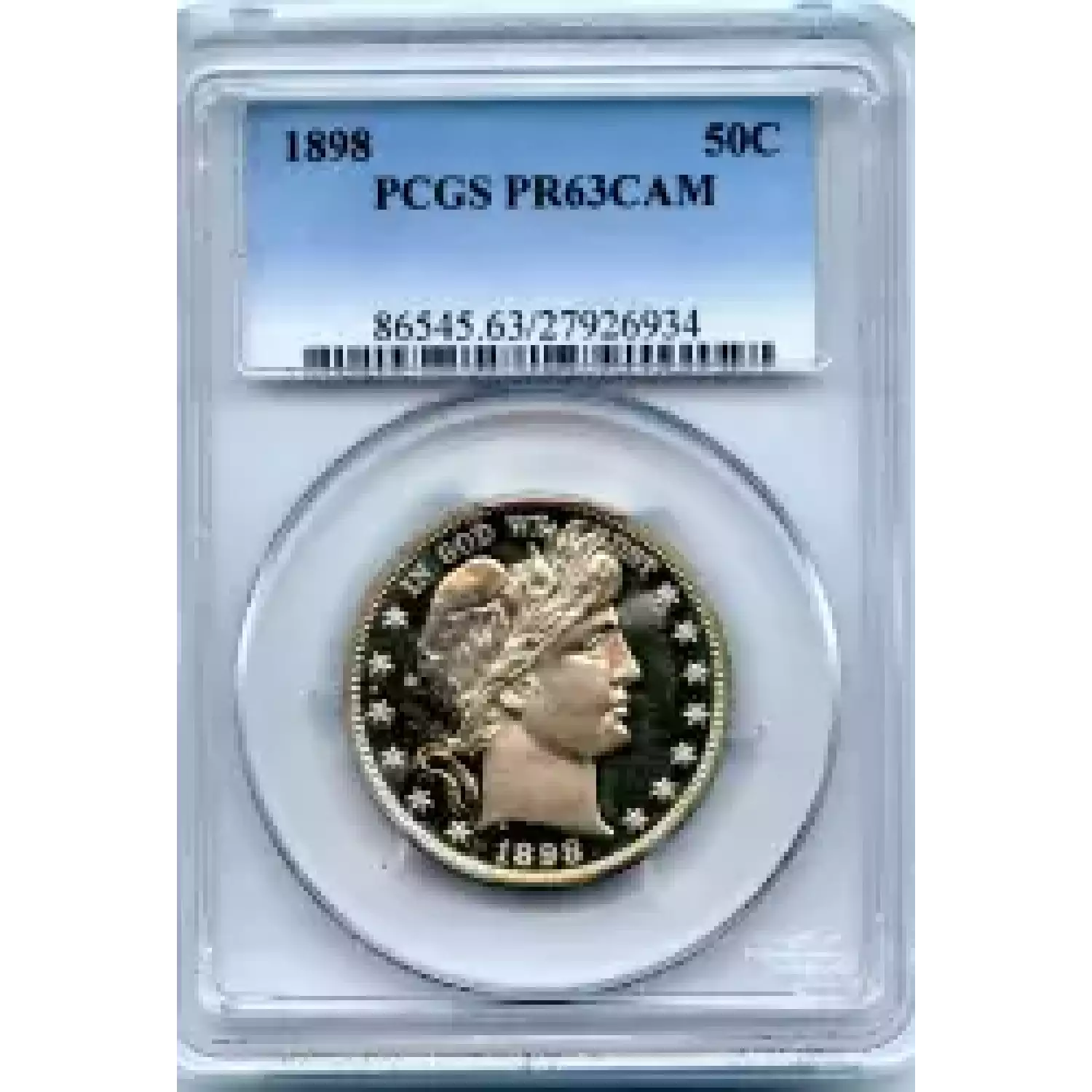508698 | 1898-PR-63 Barber Half Dollar PCGS PR-63 CAM | PCGS | PR-63 | Sold: 31/05/2015 | $1,150 |