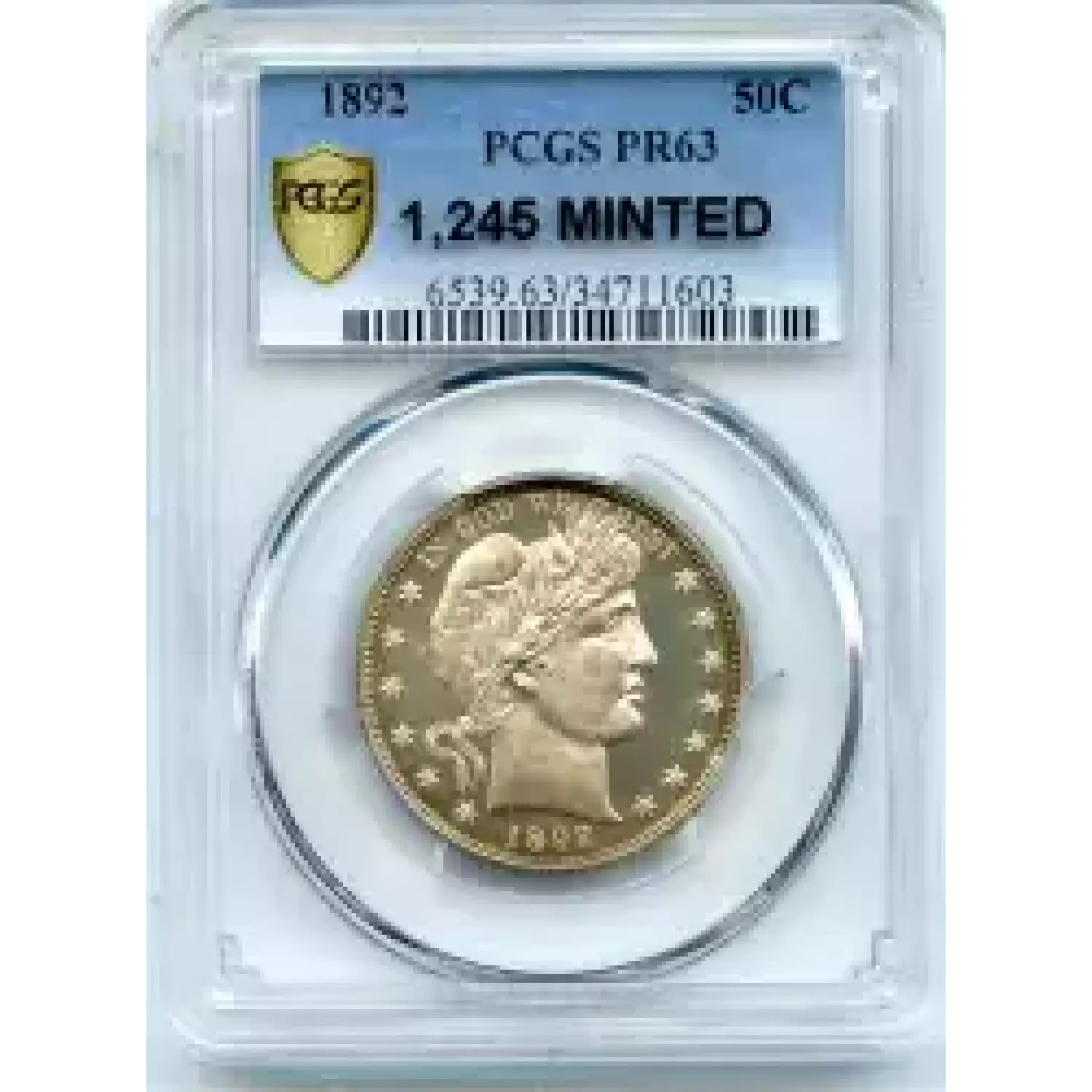 511850 | 1892-PR-63 Barber Half Dollar PCGS PR-63 | PCGS | PR-63 | Sold: 24/07/2018 | $1,300 |