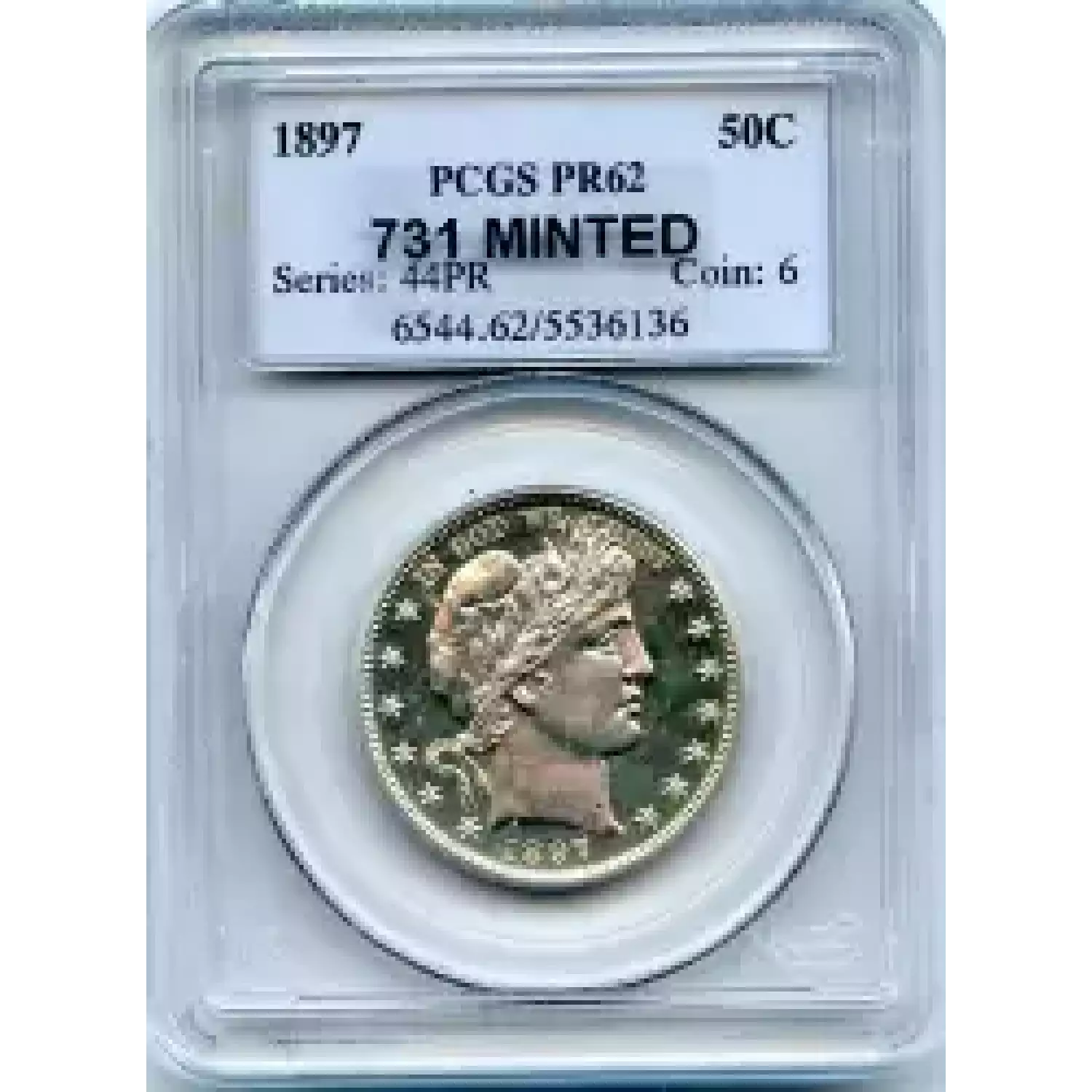 511857 | 1897-PR-62 Barber Half Dollar PCGS PR-62 | PCGS | PR-62 | Sold: 05/08/2018 | $855 |