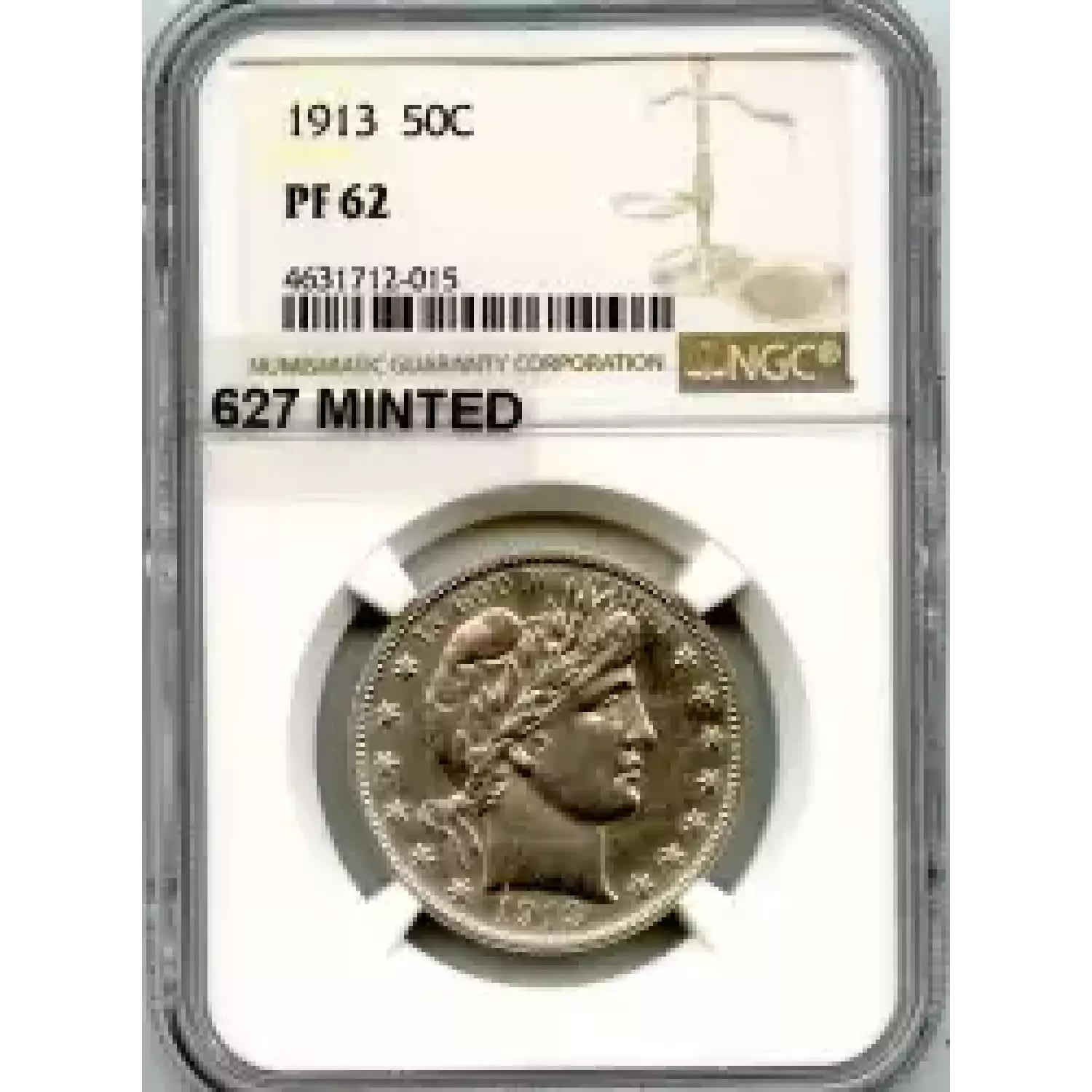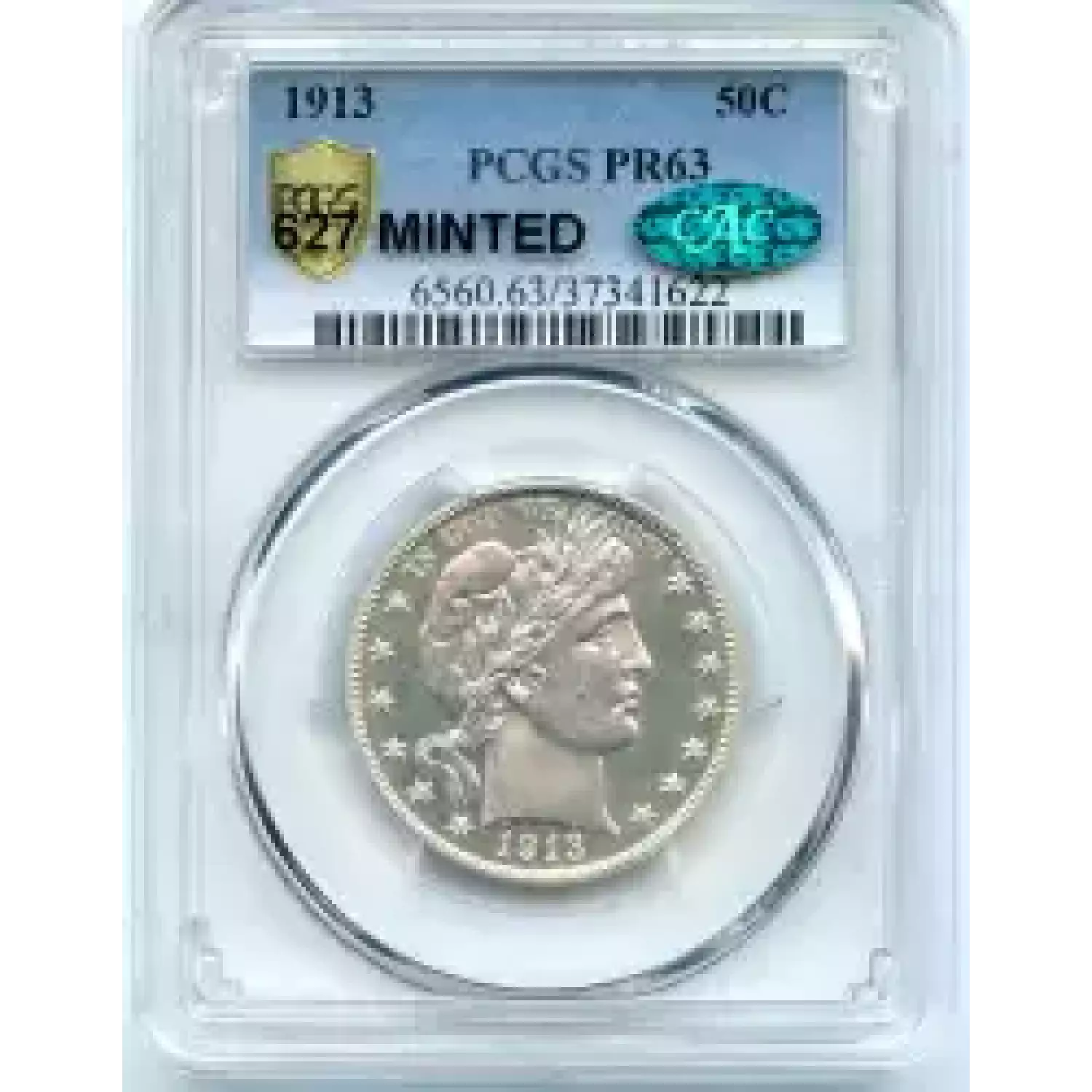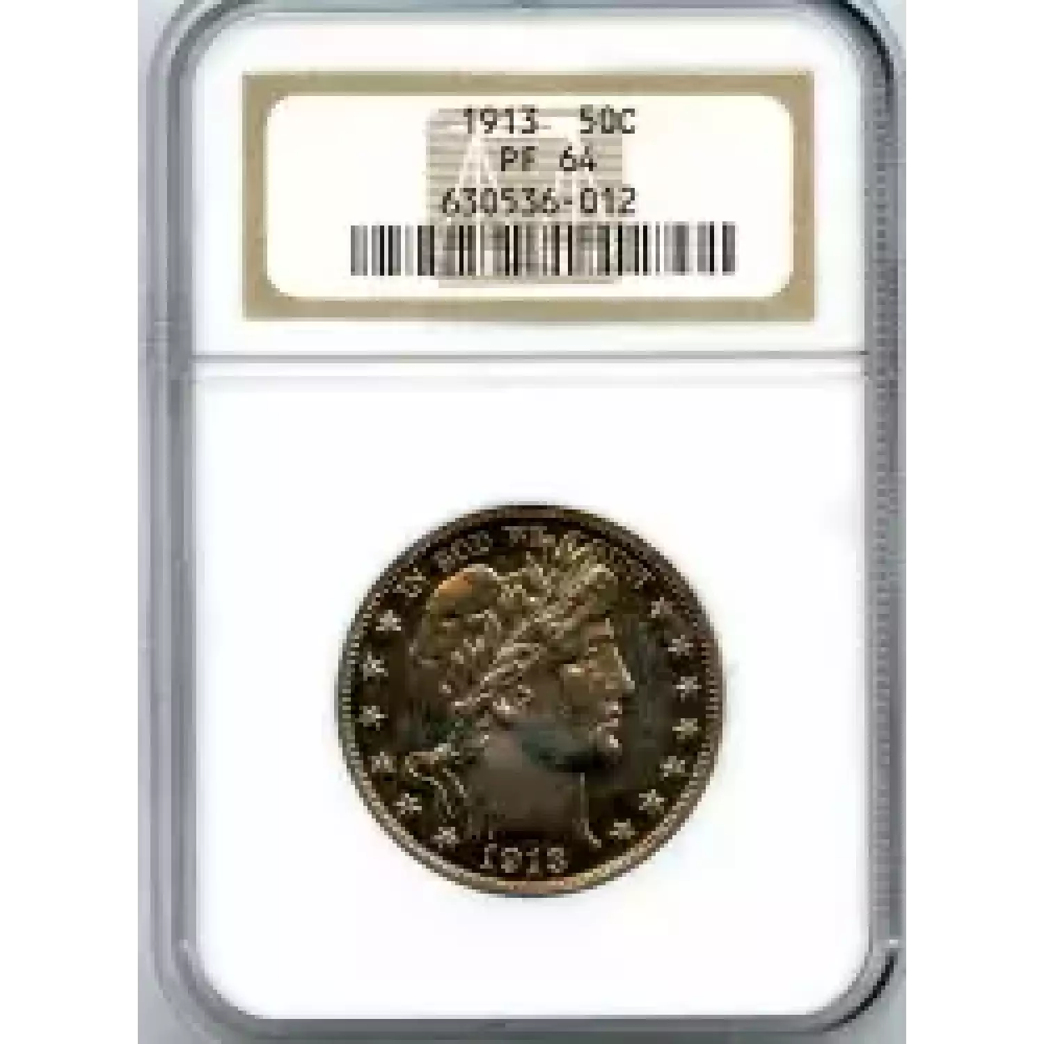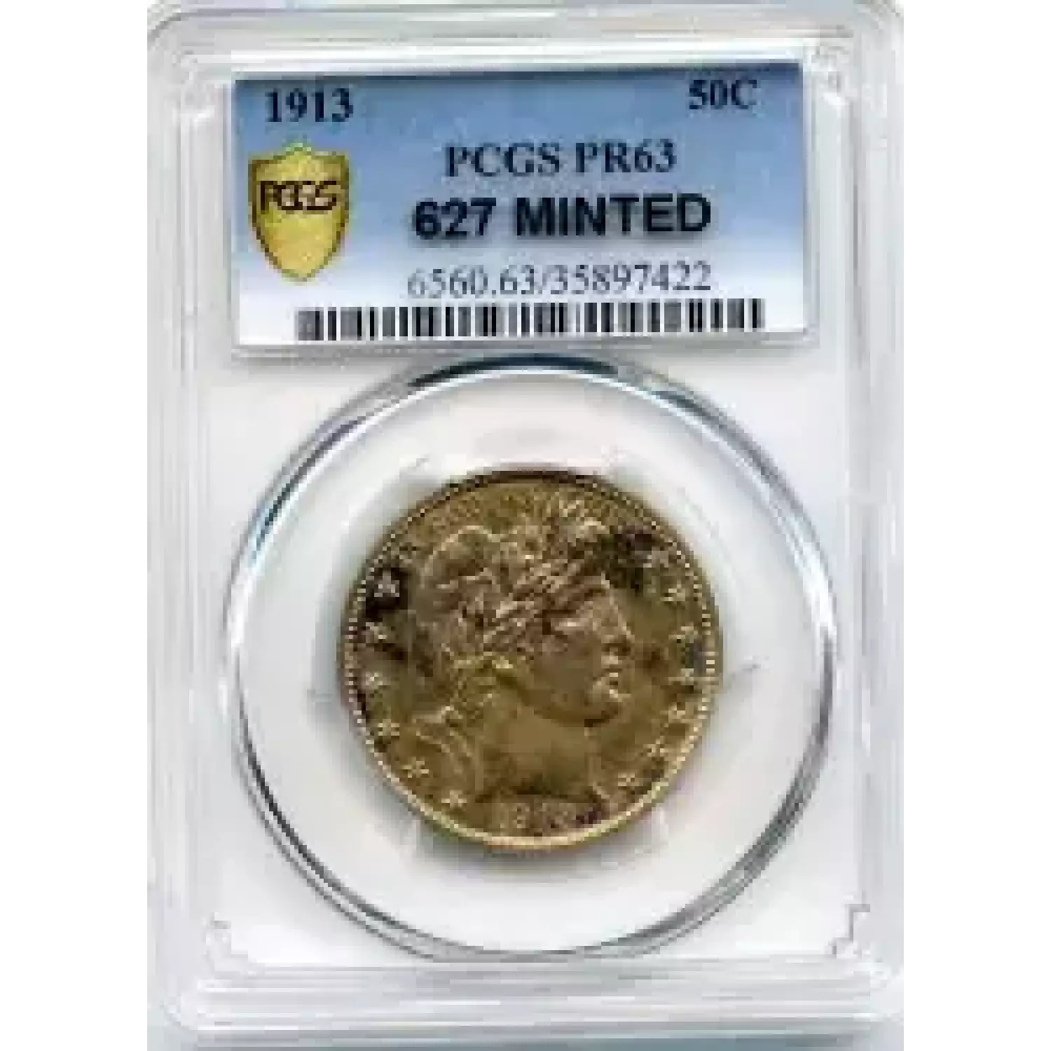 508405 | 1913-PR-63 Barber Half Dollar PCGS PR-63 | PCGS | PR-63 | Sold: 04/10/2015 | $920 |
