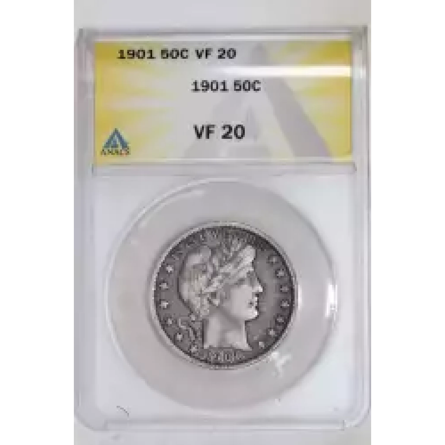 519624 | 1901 Barber Half Dollar ANACS VF-20 | ANACS | VF-20 | Sold: 30/01/2024 | $145 |
