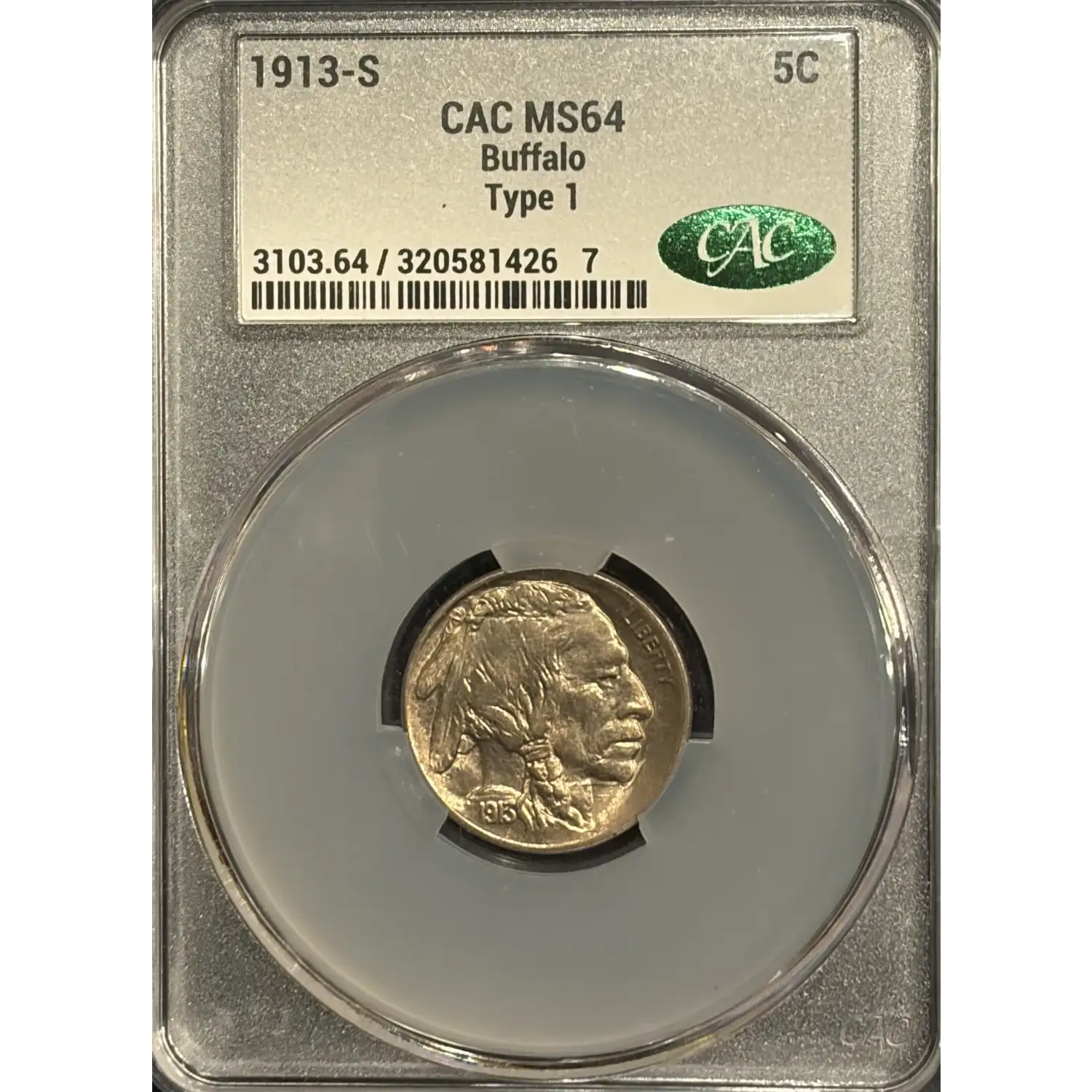 536664 | 1913-S Nickel Indian Head or Buffalo CACG MS 64 | CACG | MS 64 | Sold: 16/01/2026 | $595 |