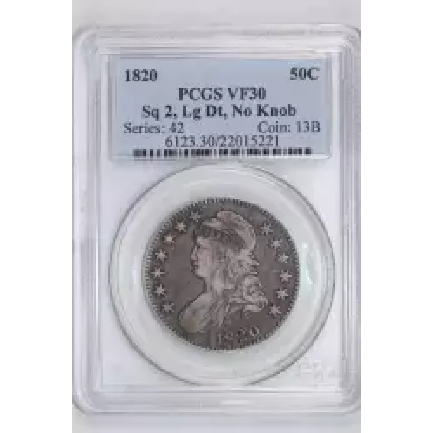 517047 | 1820 Capped Bust Half Dollars PCGS VF-30 Square 2, Large Date, No Knob | PCGS | VF-30 | Sold: 27/03/2023 | $595 |