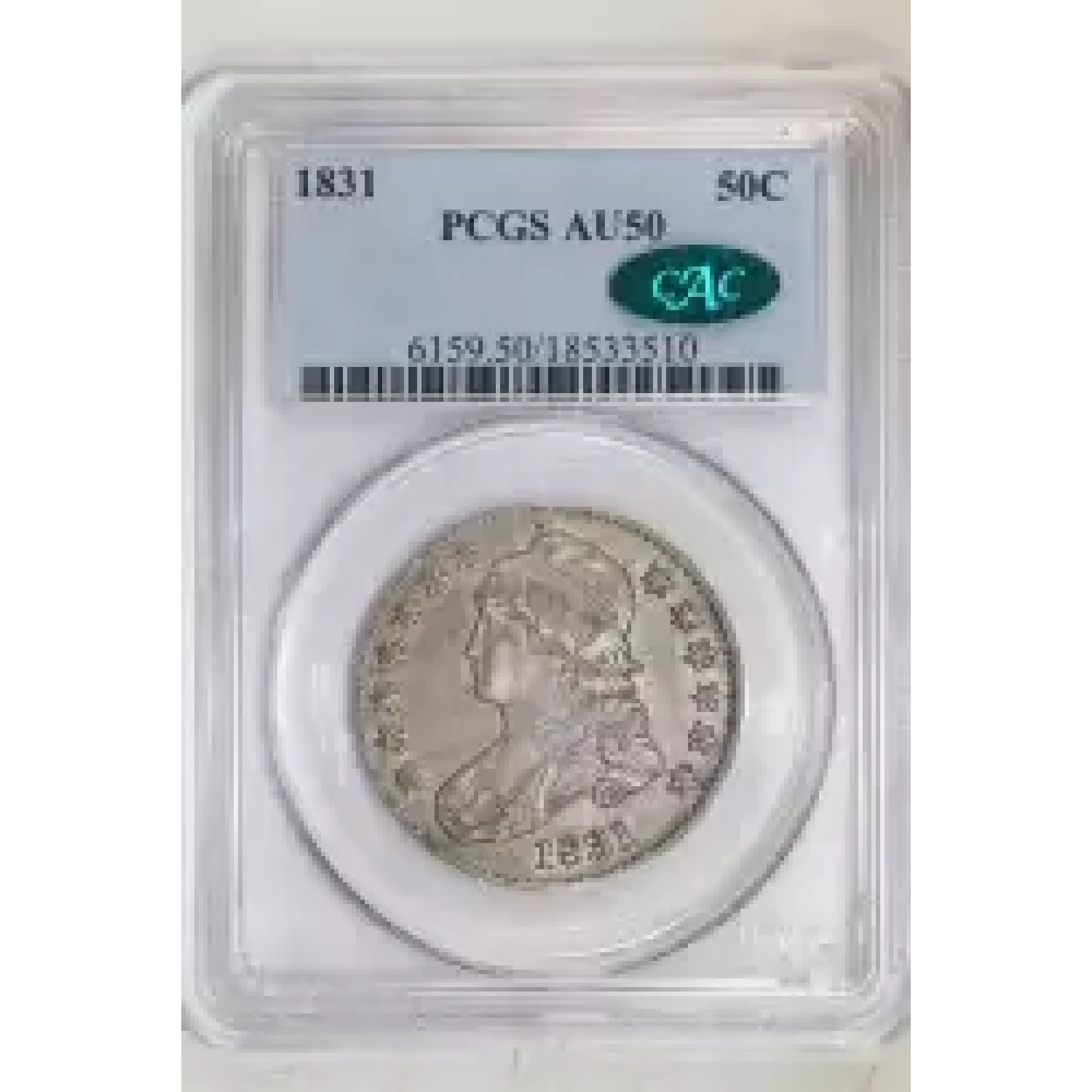 517058 | 1831 Capped Bust Half Dollars PCGS AU-50 CAC | PCGS | AU-50 | Sold: 09/12/2024 | $450 |
