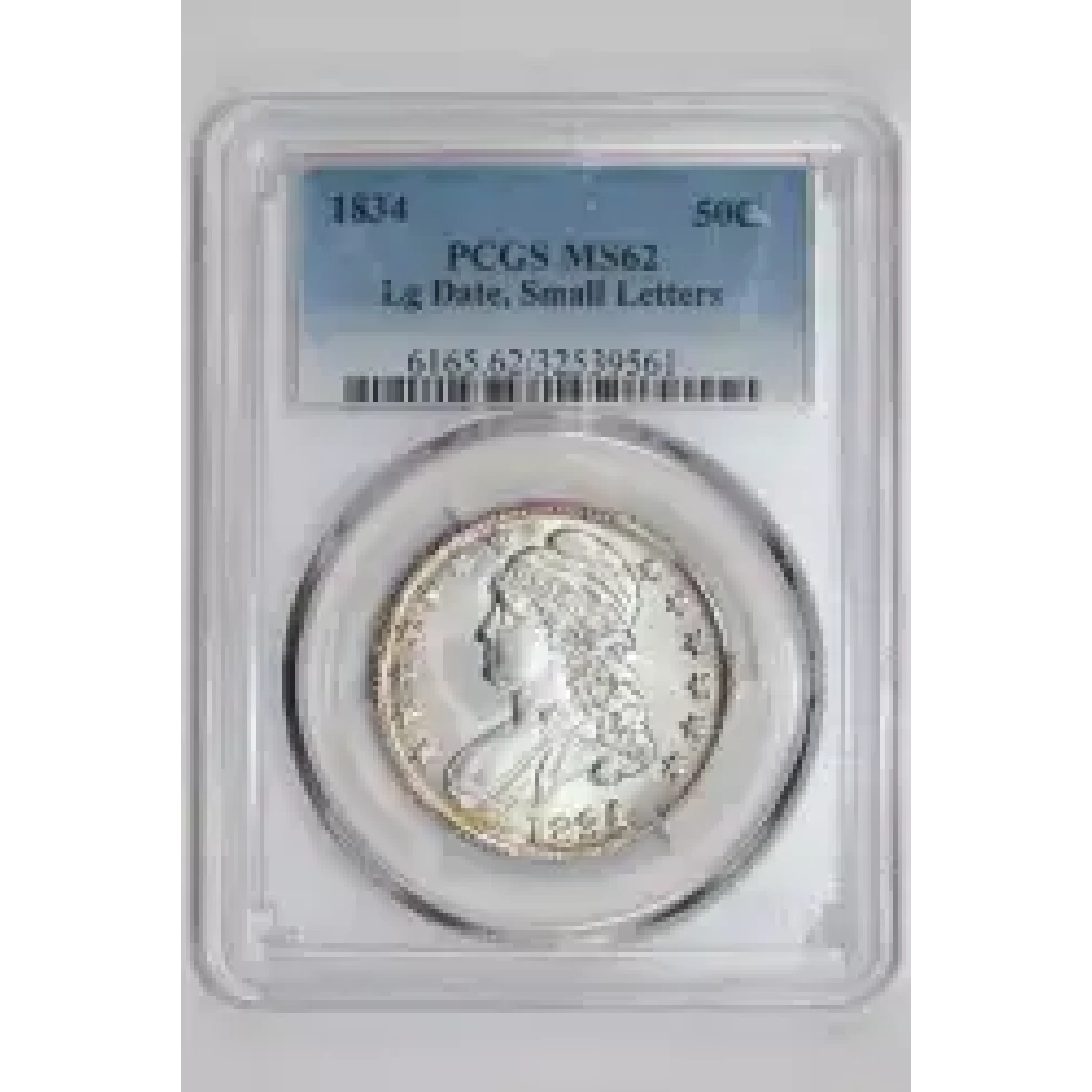 534655 | 1834 Capped Bust Half Dollars PCGS MS-62 Large Date, Small Letters | PCGS | MS-62 | Sold: 23/06/2025 | $1,525 |