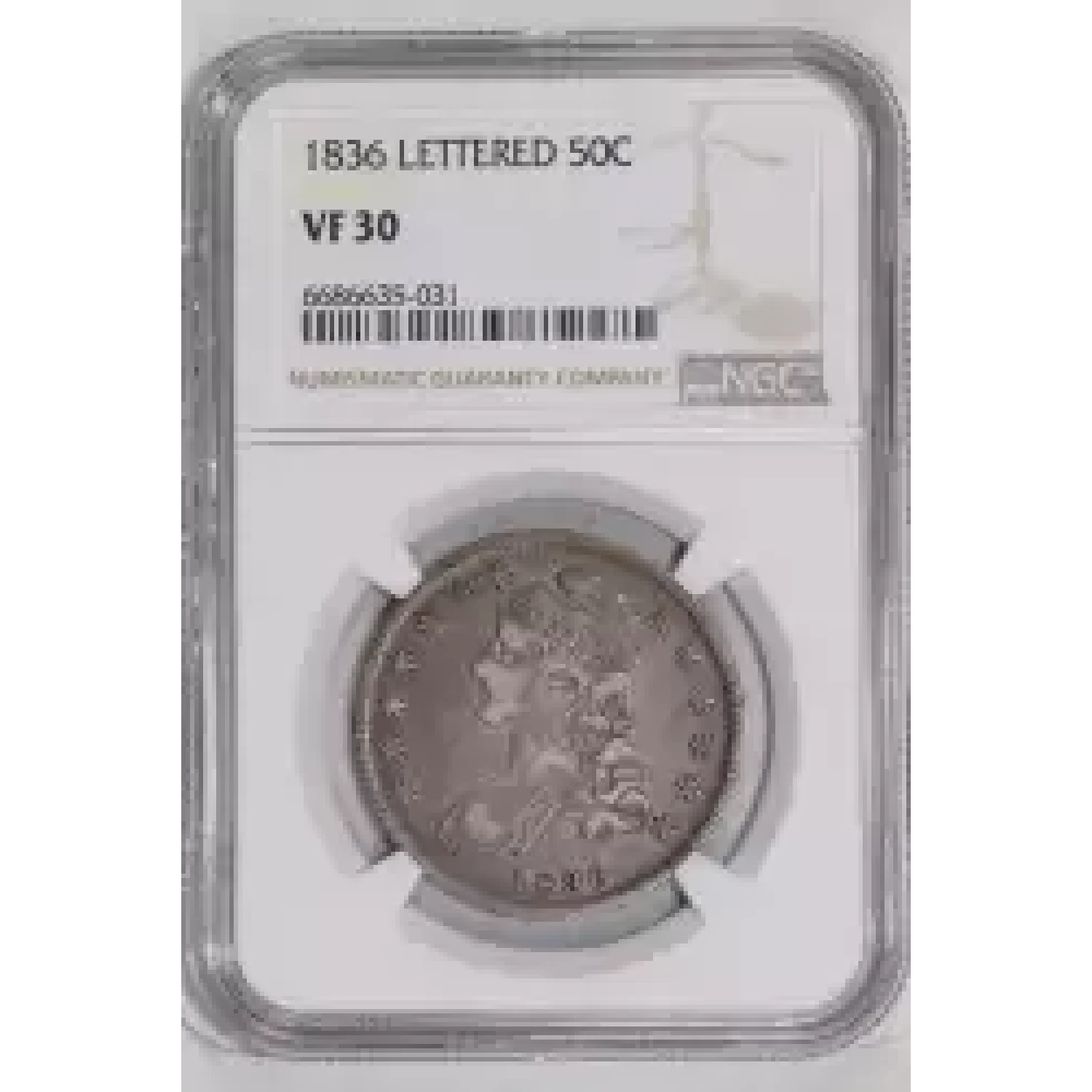 520461 | 1836 Capped Bust Half Dollars PCGS AU-53 Lettered Edge | PCGS | AU-53 | Sold: 20/11/2023 | $360 |