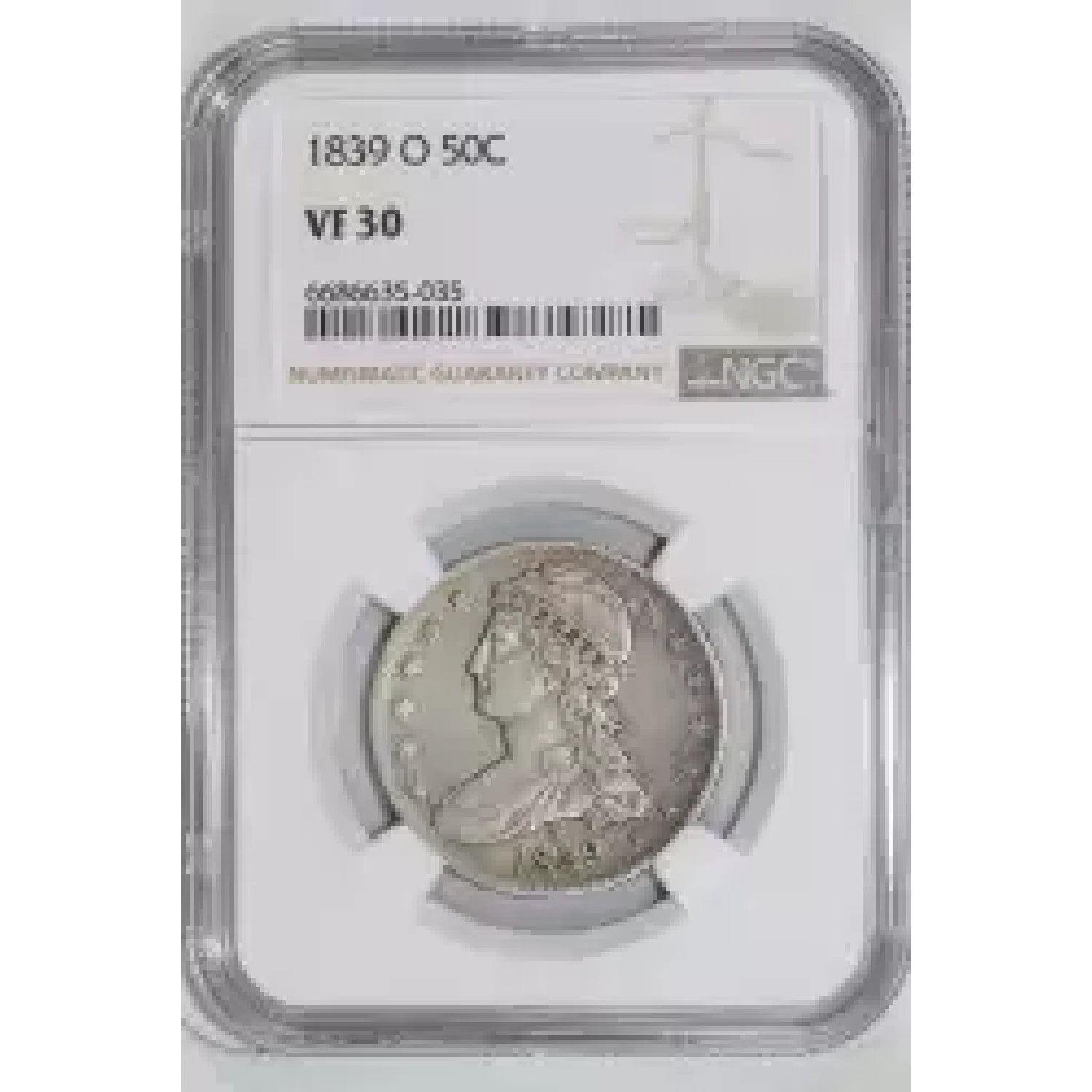 521529 | 1839-O Capped Bust Half Dollars, Reeded Edge NGC VF-30 | NGC | VF-30 | Sold: 28/03/2024 | $2,650 |