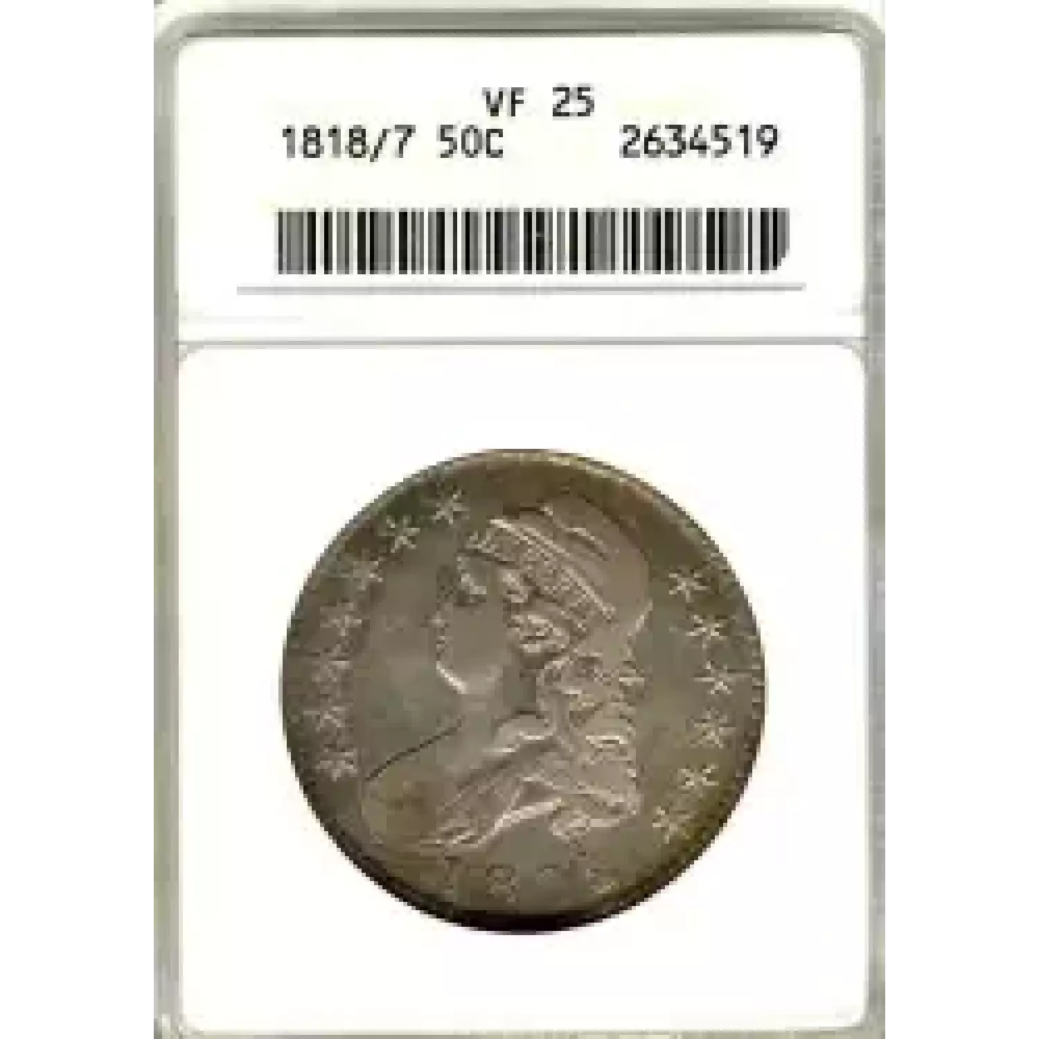 503435 | 1818/7-VF-25 Capped Bust Half Dollars, Reeded Edge ANACS VF-25 | ANACS | VF-25 | Sold: 01/04/2006 | $150 |
