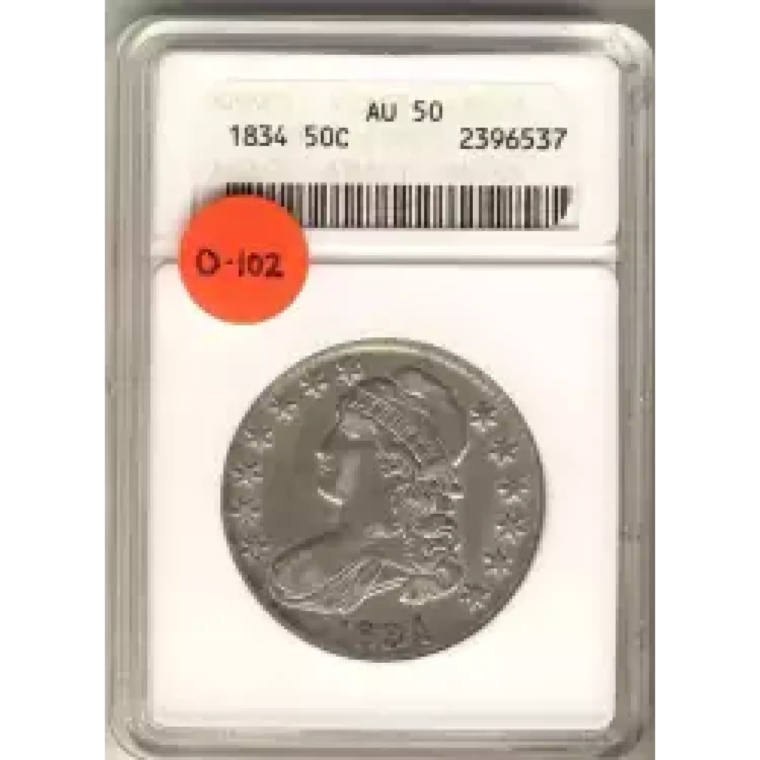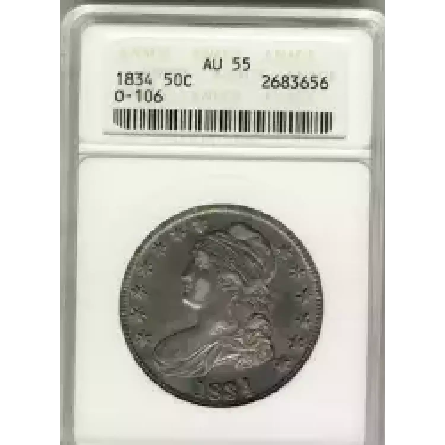 503521 | 1834-AU-55 Capped Bust Half Dollars, Reeded Edge ANACS AU-55 | ANACS | AU-55 | Sold: 08/11/2006 | $400 |
