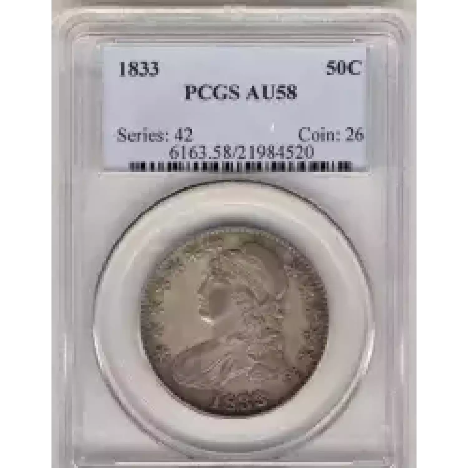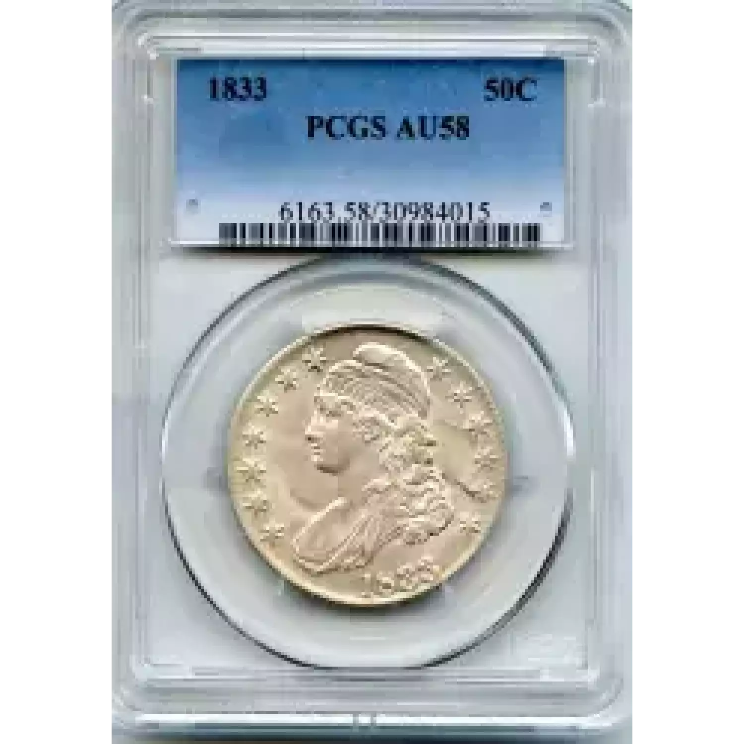 503596 | 1833-AU-58 Capped Bust Half Dollars, Reeded Edge PCGS AU-58 | PCGS | AU-58 | Sold: 12/07/2006 | $550 |