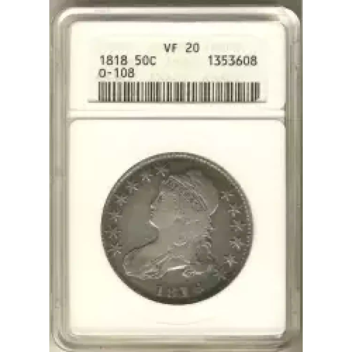 504903 | 1818-VF-20 Capped Bust Half Dollars, Reeded Edge ANACS VF-20 | ANACS | VF-20 | Sold: 04/07/2009 | $125 |