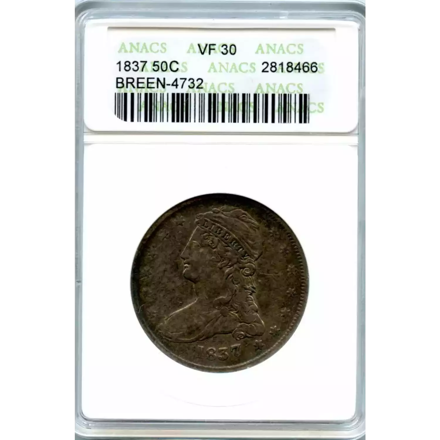 506065 | 1837-AU-50 Capped Bust Half Dollars, Reeded Edge ANACS AU-50 | ANACS | AU-50 | Sold: 21/03/2012 | $300 |