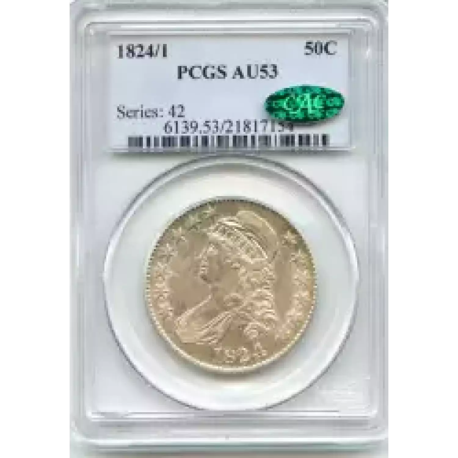 506917 | 1824/1-AU-53 Capped Bust Half Dollars, Reeded Edge PCGS AU-53 CAC | PCGS | AU-53 | Sold: 20/09/2013 | $900 |