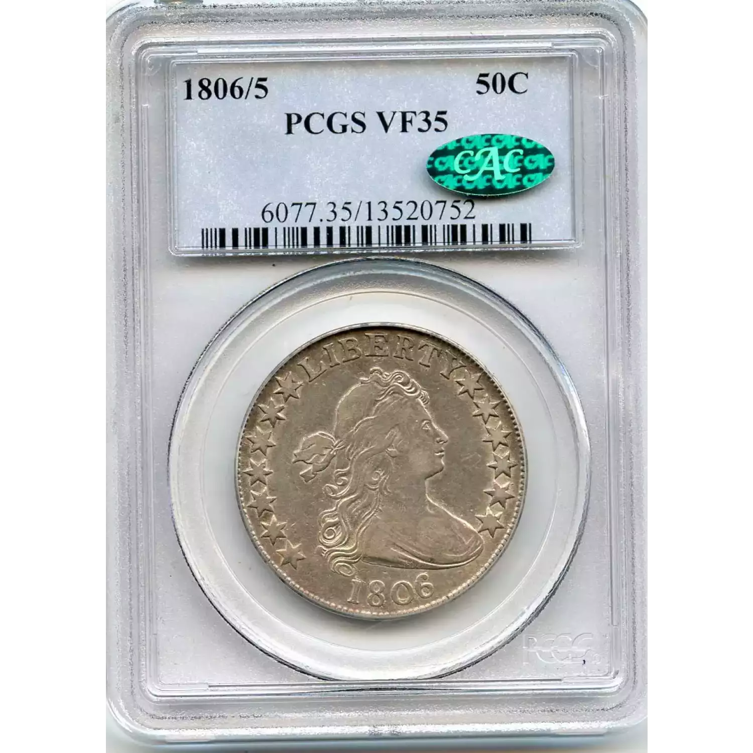 512253 | 1806/5-VF-35 Capped Bust Half Dollars, Reeded Edge PCGS VF-35 CAC | PCGS | VF-35 | Sold: 16/10/2018 | $1,150 |