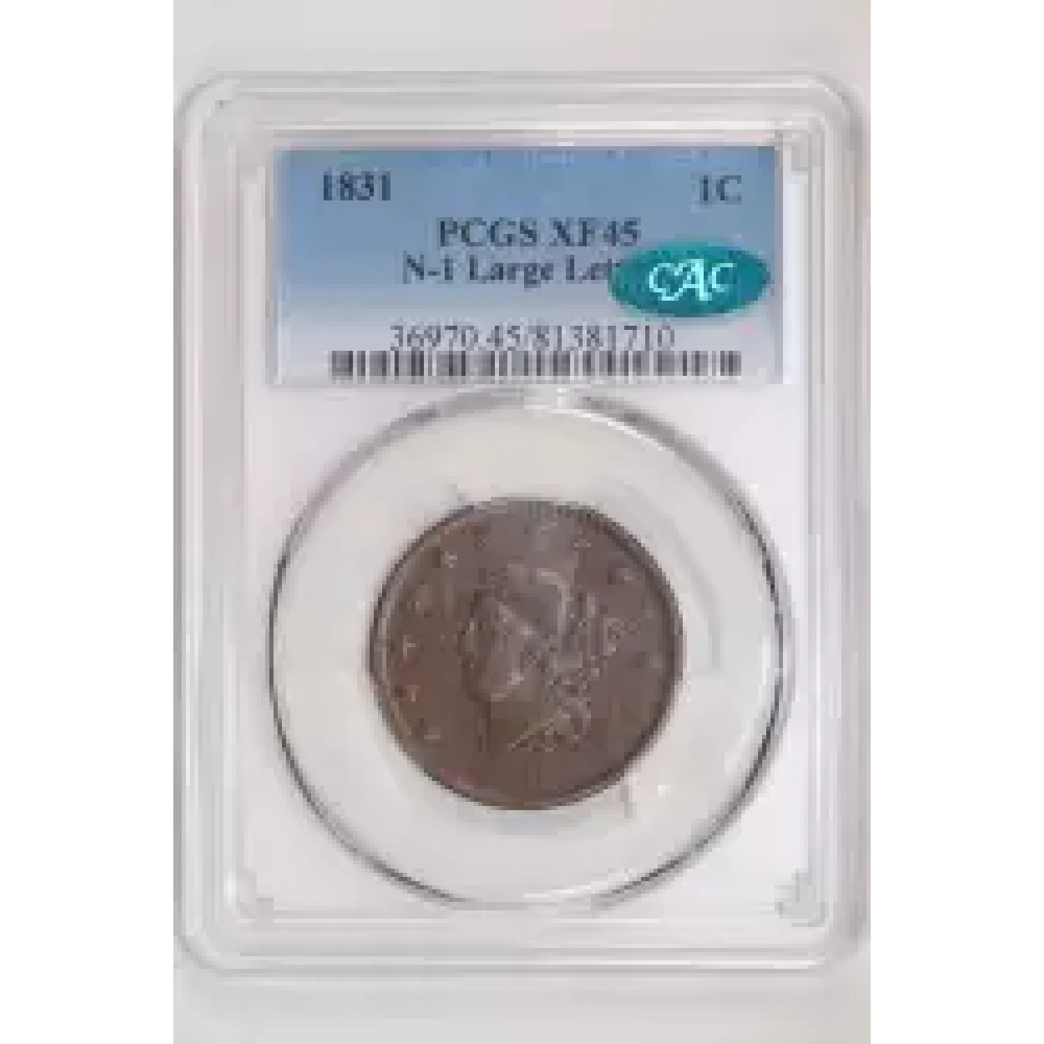 522071 | 1831 Large Cents Coronet Head PCGS XF-45 BN Large Letters N-1 Large Letters | PCGS | XF-45 | Sold: 29/04/2024 | $395 |
