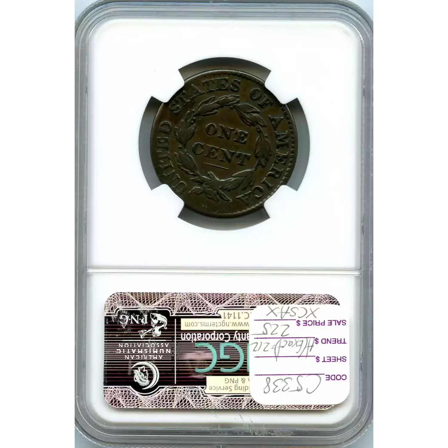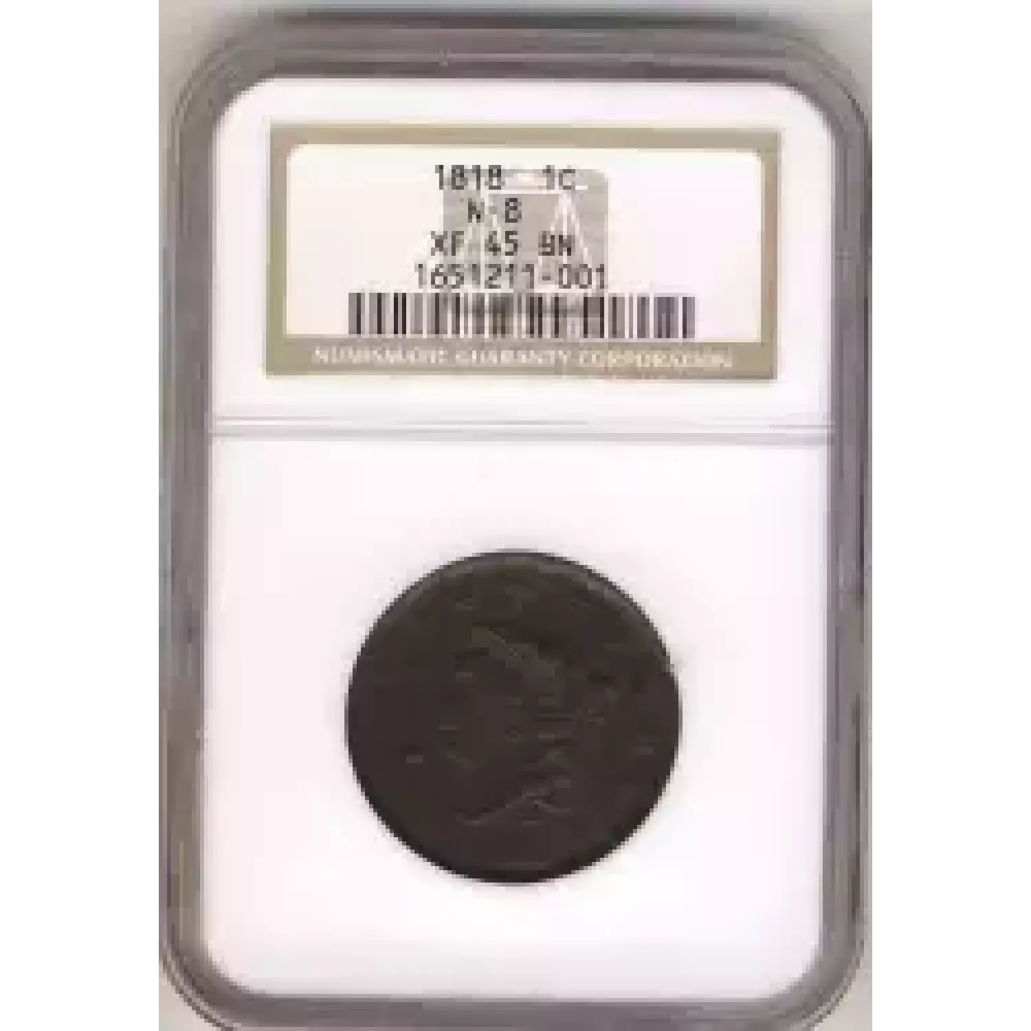 503987 | 1818-XF-45 Large Cents Coronet Head NGC XF-45 BN | NGC | XF-45 | Sold: 15/12/2007 | $250 |