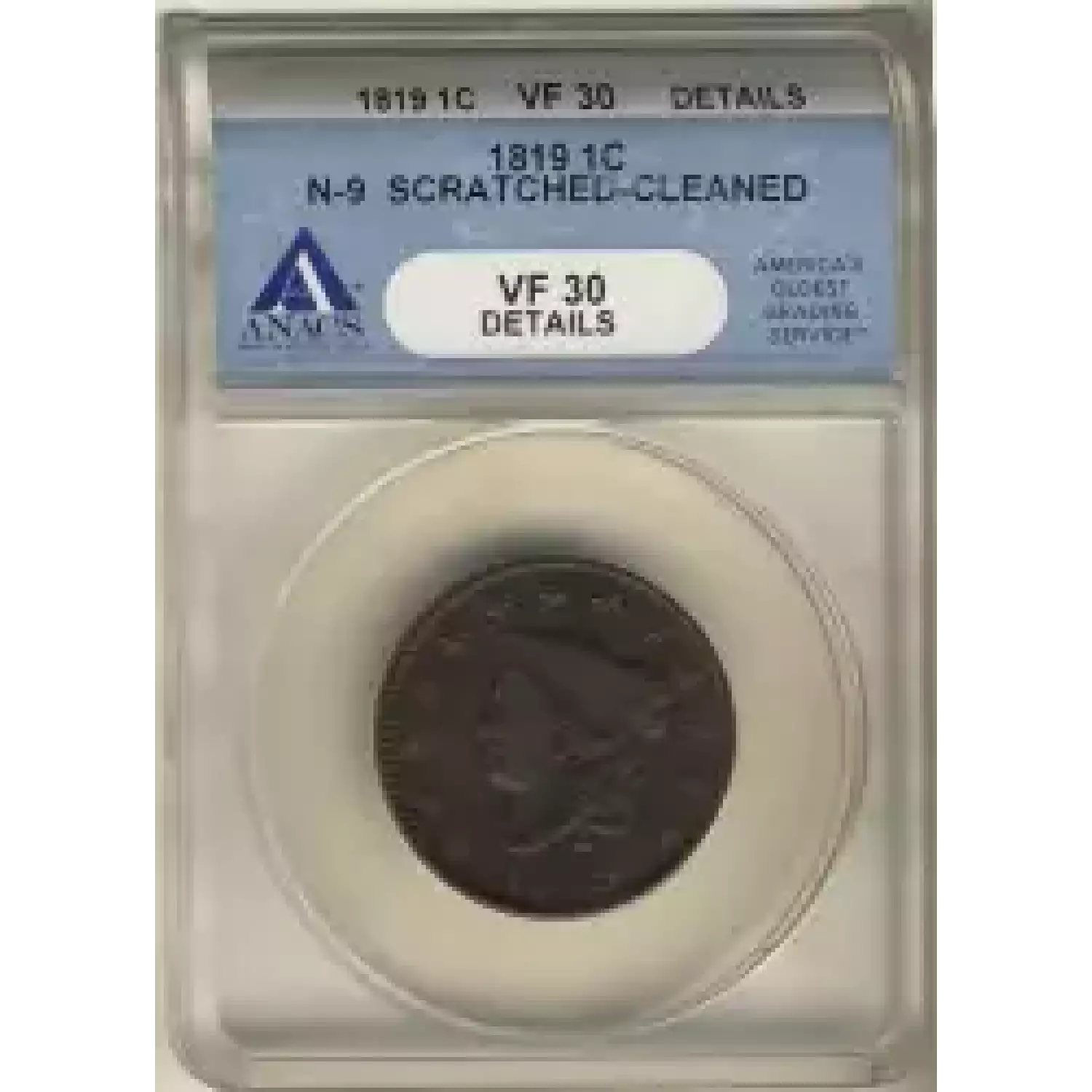 504910 | 1819-VF Details Large Cents Coronet Head ANACS VF Details | ANACS | VF Details | Sold: 03/02/2010 | $100 |
