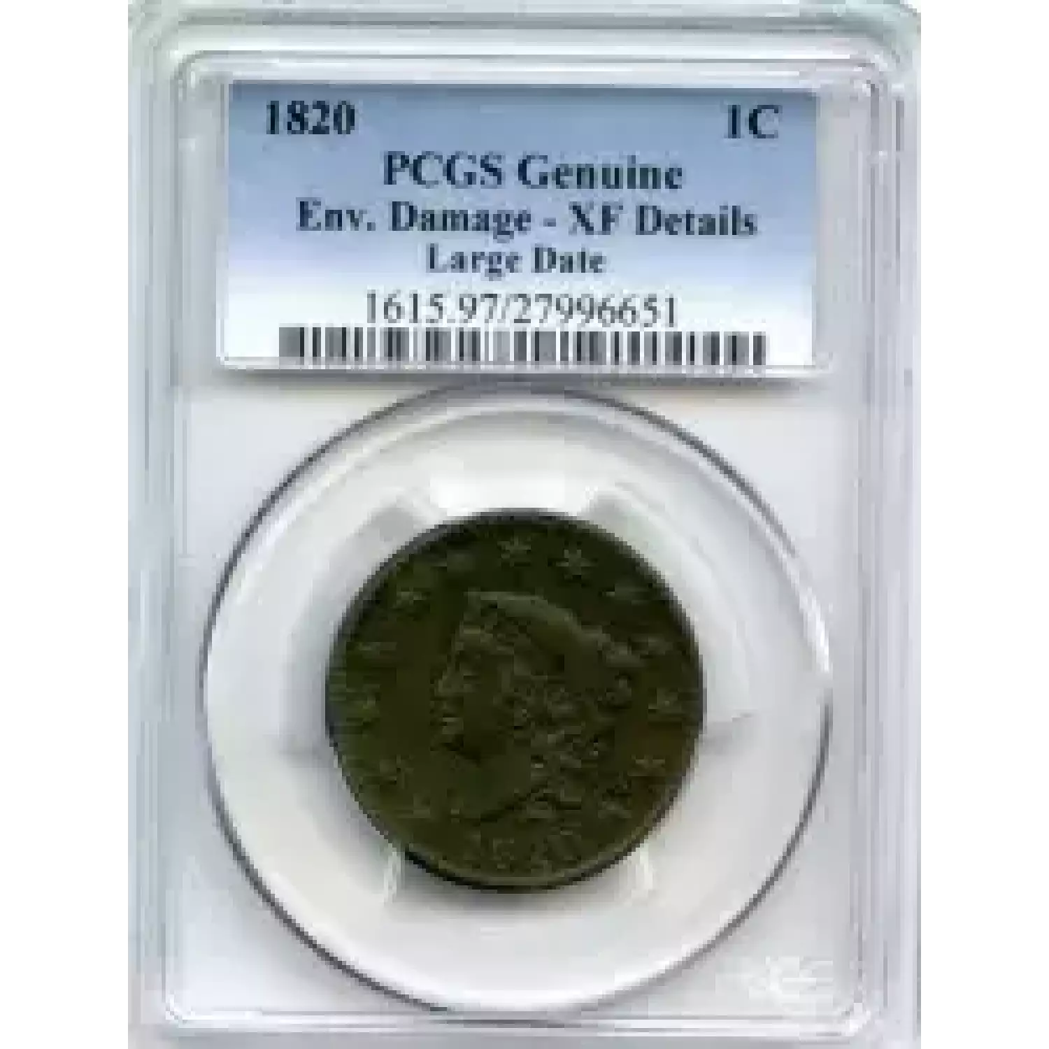 506682 | 1820-Genuine (97 - Environmental Damage) Large Cents Coronet Head PCGS Genuine (97 - Environmental Damage) | PCGS | Genuine (97 - Environmental Damage) | Sold: 13/08/2013 | $125 |